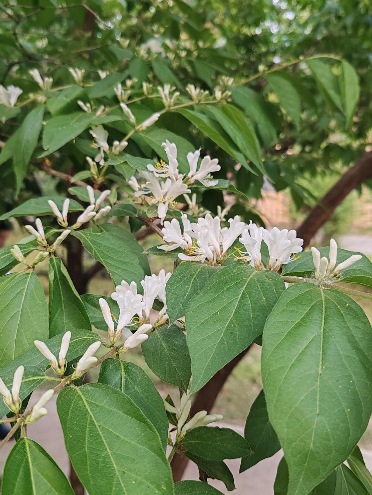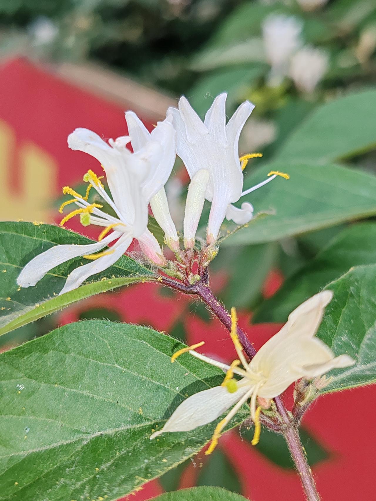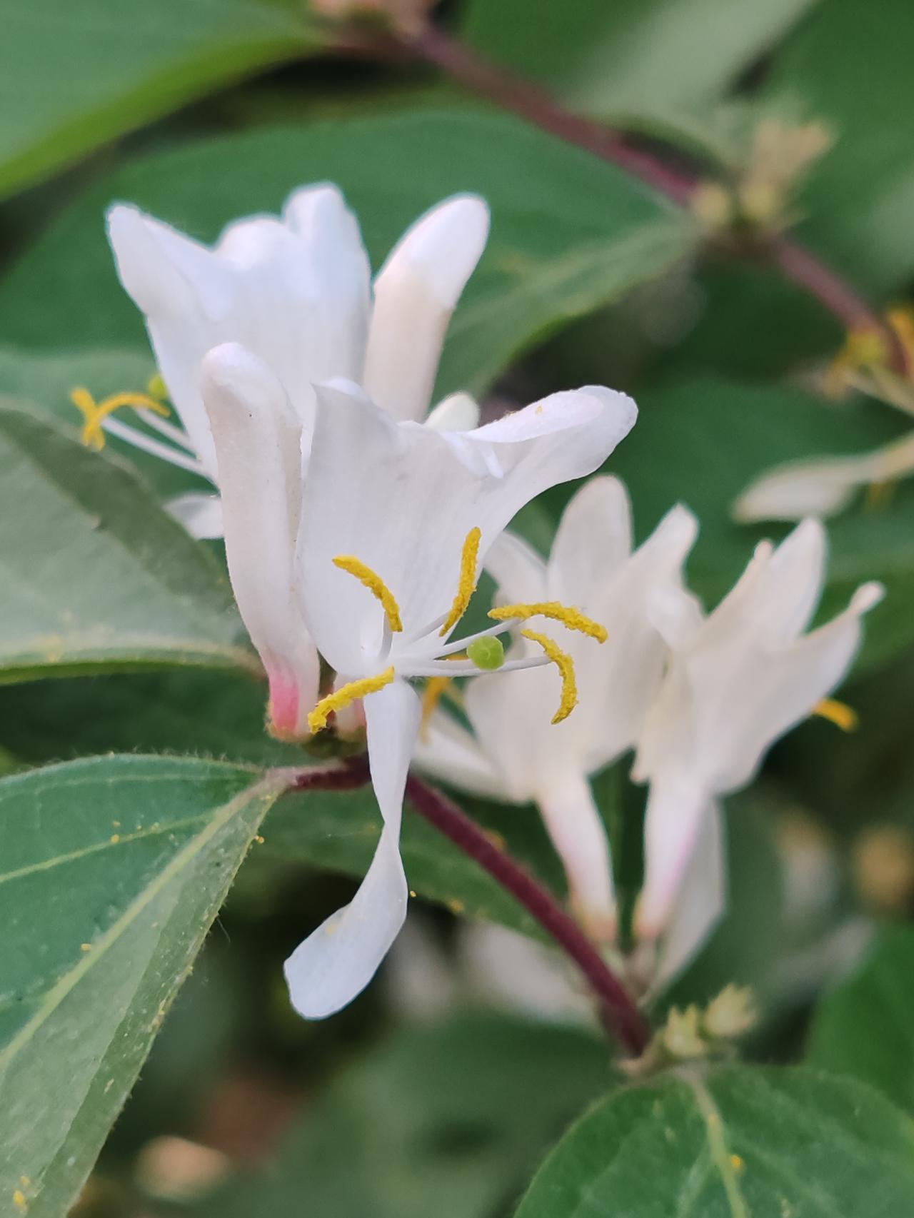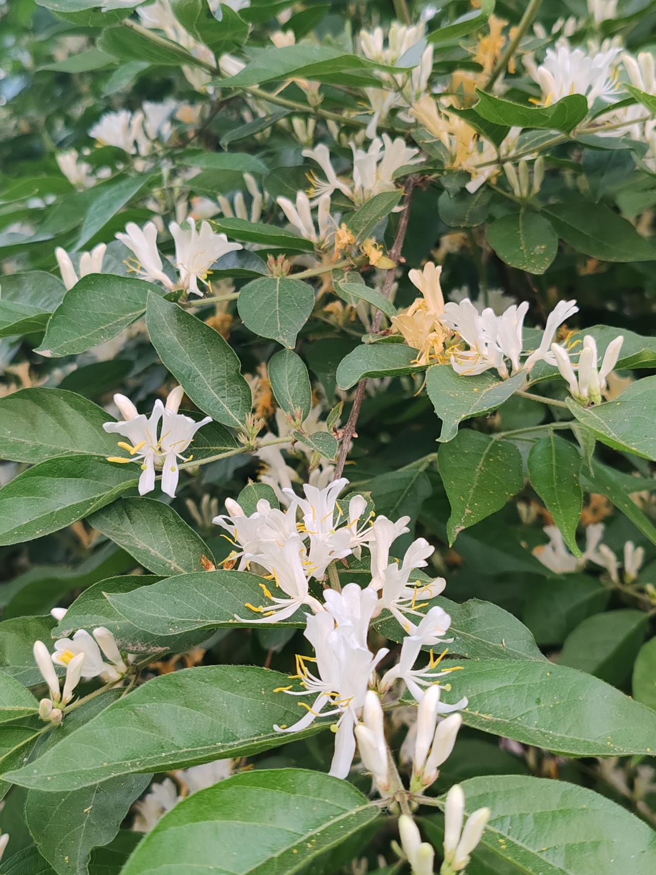 不知不觉间,天气又热了起来。清明将尽,谷雨将至,金银花悄然绽放在枝头。远看,似霜染枝头,几无颜色。然而凑近细观,它又是那般洁白、细腻、活泼、灵动,着实好看。它可是清热去火的一味良药。 金银花的花朵小巧玲珑,花瓣细长而柔软,宛如翩翩舞者的裙摆。微风拂过,它们轻轻摇曳,仿佛在欢快地舞蹈。凑近去,还能闻到那淡雅清新的花香,丝丝缕缕,沁人心脾。