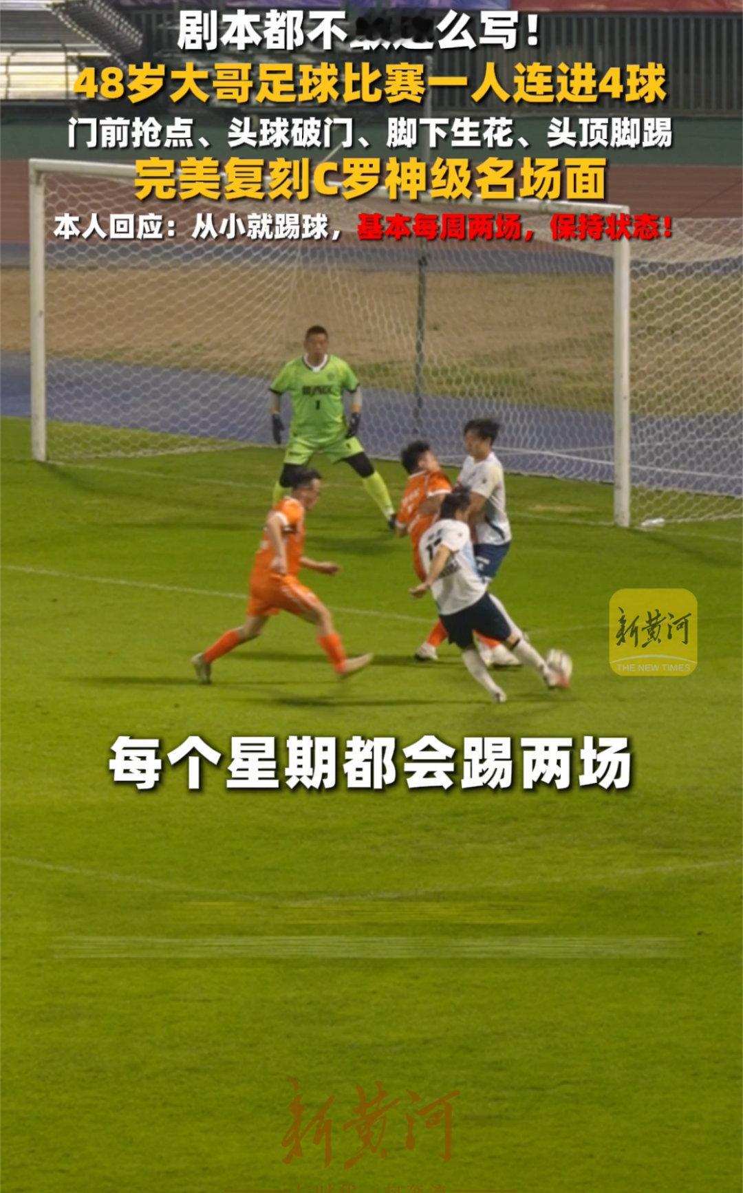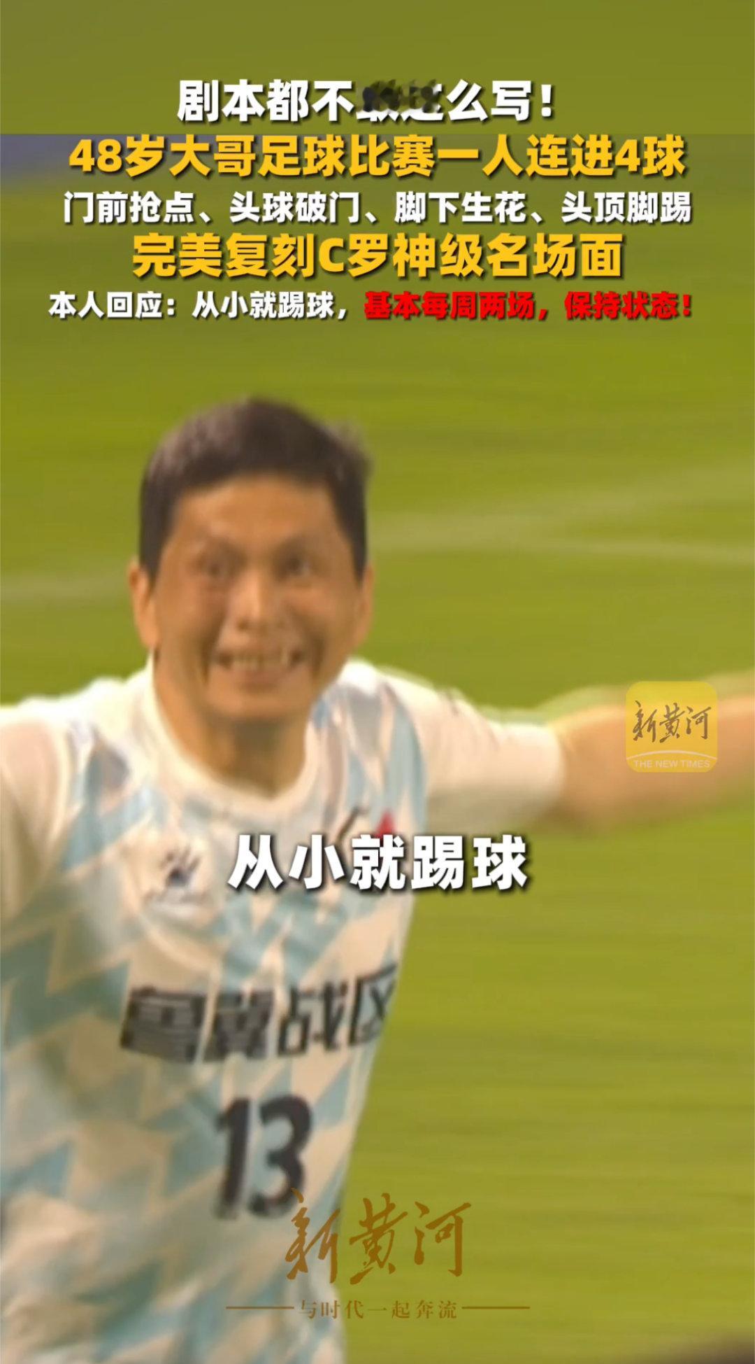 谁说中年只能服老?48岁大哥用C罗式大四喜给出答案!日常送快递,赛场变战神,坚持与自律让他保持巅峰状态,平凡生活里的热爱永远滚烫!48岁大哥球场复刻C罗大四喜48岁大哥复刻C罗神级名场面