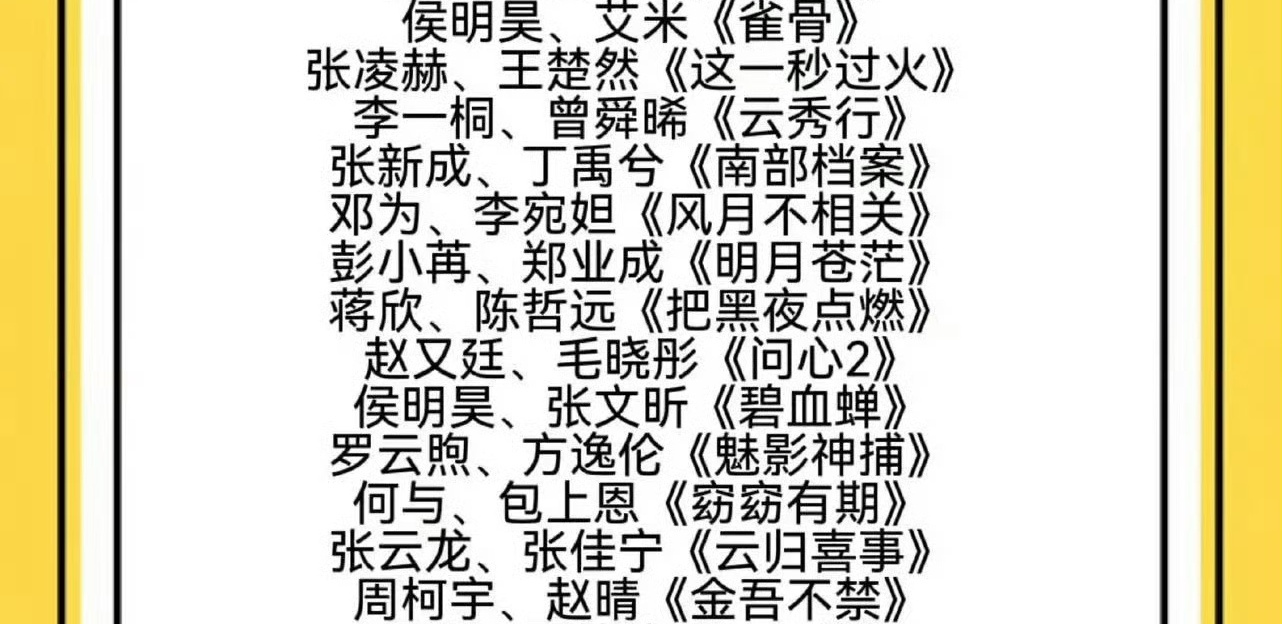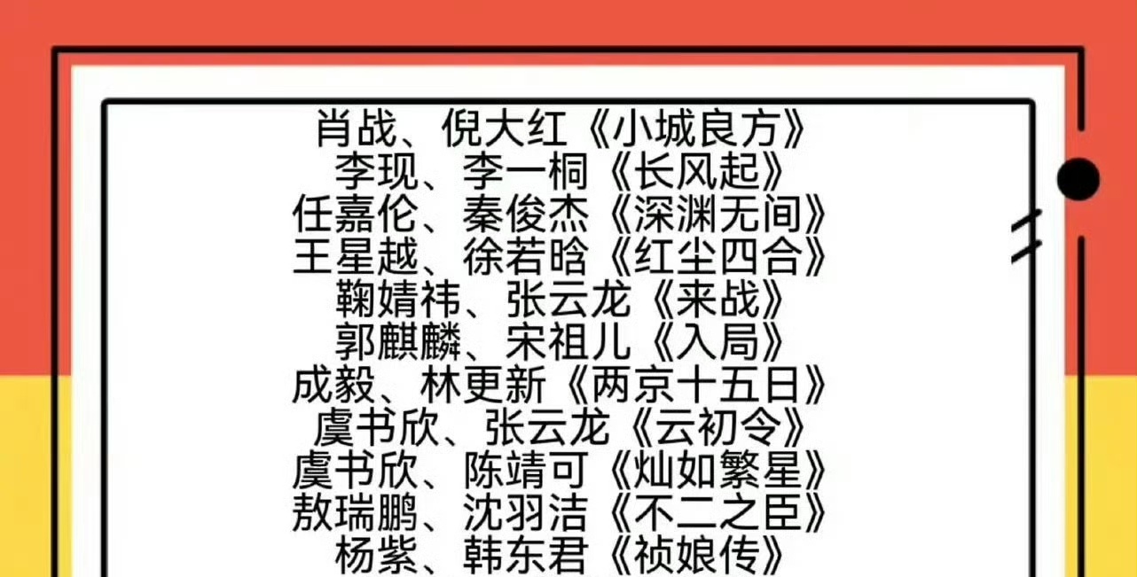 爱奇艺世界大会最期待哪部剧爱奇艺世界大会推介剧集2026爱奇艺世界大会推介剧集,最期待哪部剧? 肖战、倪大红《小城良方》李现、李一桐《长风起》任嘉伦、秦俊杰《深渊无间》王星越、徐若晗《红尘四合》鞠婧祎、张云龙《来战》郭麒麟、宋祖儿《入局》成毅、林更新《两京十五日》虞书欣、张云龙《云初令》虞书欣、陈靖可《灿如繁星》敖瑞鹏、沈羽洁《不二之臣》杨紫、韩东君《祯娘传》侯明昊、艾米《雀骨》张凌赫、王楚然《这一秒过火》李一桐、曾舜晞《云秀行》张新成、丁禹兮《南部档案》邓为、李宛妲《风月不相关》彭小苒、郑业成《明月苍茫》蒋欣、陈哲远《把黑夜点燃》赵又廷、毛晓彤《问心2》侯明昊、张文昕《碧血蝉》罗云熙、方逸伦《魅影神捕》何与、包上恩《窈窈有期》张云龙、张佳宁《云归喜事》周柯宇、赵晴《金吾不禁》景甜、屈楚萧《同心结》黄景瑜、蒋奇明《重器》王星越、王千源《暴虎》陈晓、张新成《秦谜》秦昊、汤唯《孔雀东南飞》刘昊然、李兰迪《海岛舒服日志》迪丽热巴、陈昊森《虽然不能同时拥有一切》钟楚曦、陈伟霆《爱情慢慢》李兰迪、郭俊辰《喀什恋歌》吴宣仪、翟潇闻《有戏》孙俪、孙阳《生日将至》赵又廷、庄达菲《生而有翼》潘粤明、胡先煦《寻找李顺章》周冬雨、彭冠英《海边的秘密》王骁、田曦薇《擒贼记》林一、卢昱晓《折月亮》田曦薇、胡一天《天才女友》蔡文静、陈靖可《非正式浪漫》陈鑫海、张淼怡《兄友妹恭》欧豪、娜扎《醒来》王阳、孙千《心诉》宋茜、王珞丹《狂花》杨超越、蒋龙《喜剧之王》敖瑞鹏、代露娃《一点浩然气》徐若晗、周柯宇《一枕春华》任嘉伦、王鹤润《佳偶天成》陈晓、毛晓彤《云襄传之将进酒》吴谨言、江疏影《回来的她们》朱正廷、卢洋洋《你是人间惊鸿客》