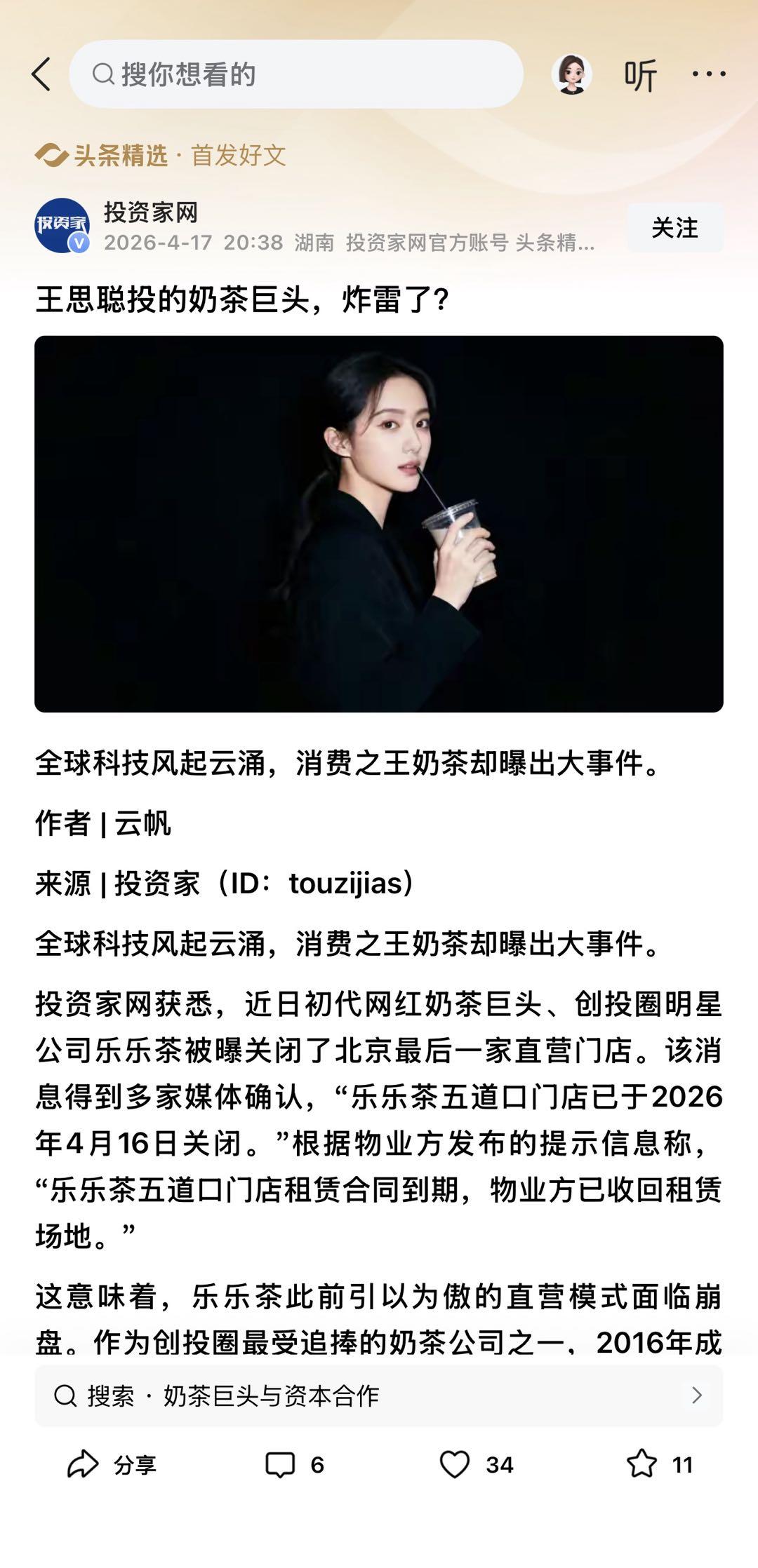 初代网红奶茶巨头轰然倒下!乐乐茶创始人负债离场,王思聪投资也打水漂!