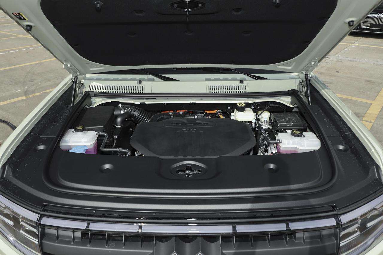 我上周验的 2025 款天神智驾 Max 版,纯电模式通勤一周不用加油,市区开空调实测油耗 3.8 个左右,高速混动模式稳定在 6.2 个,加 92 号油就行;DMO 混动平台 + 非承载式车身 + 三把电控锁,最大涉水深度 700mm,周末去工地或露营走烂路完全没压力,比同级别燃油越野车省一半油钱,还能免购置税,通勤成本低到离谱。