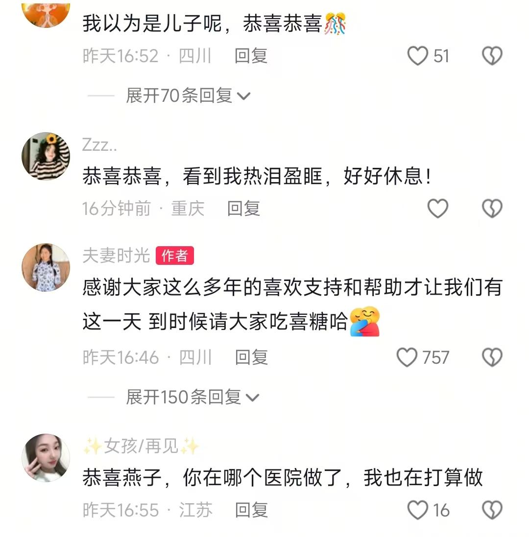 最戳我的是那条“看到别人都上岸了,我还在原地踏步”的评论,我当时就有点郁闷,谁懂这种无力感啊。还有人说跟燕子同医院,产检碰到过好几次,缘分真的很奇妙。然后燕子他们也很实在,说感谢大家多年的支持,到时候请吃喜糖,必须的!