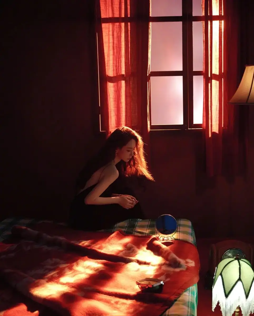 戚薇穿黑吊带勾勒精致肩颈