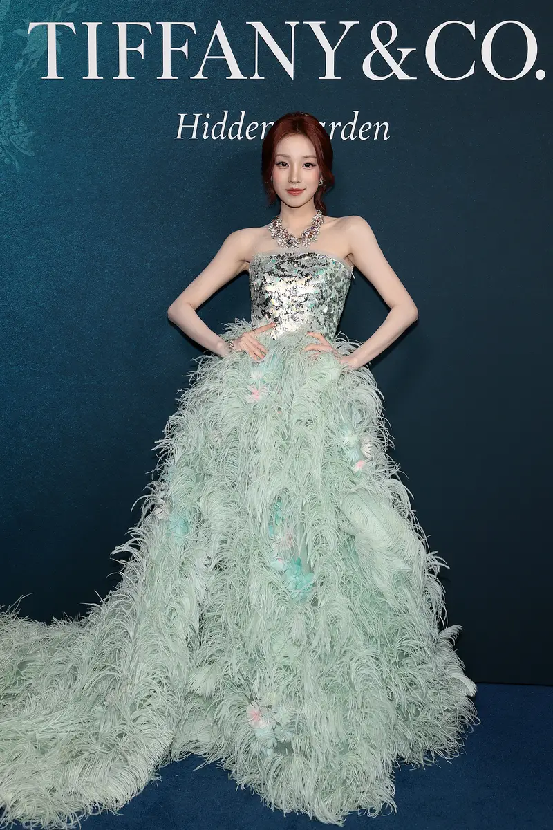 宋雨琦穿薄荷绿羽毛裙仙气灵动 四肢纤细锁骨白皙诱人