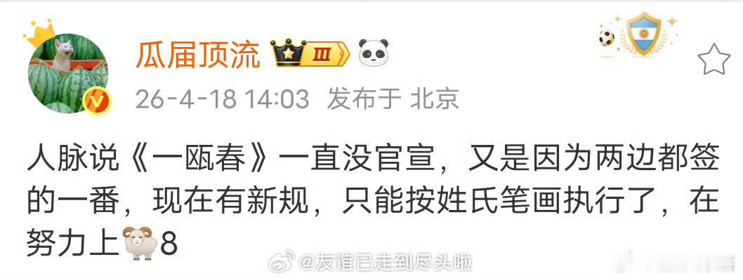 瓜主说《一瓯春》许凯周也都签的一番,会依照新规按姓氏笔画执行,一开始不是许凯一番