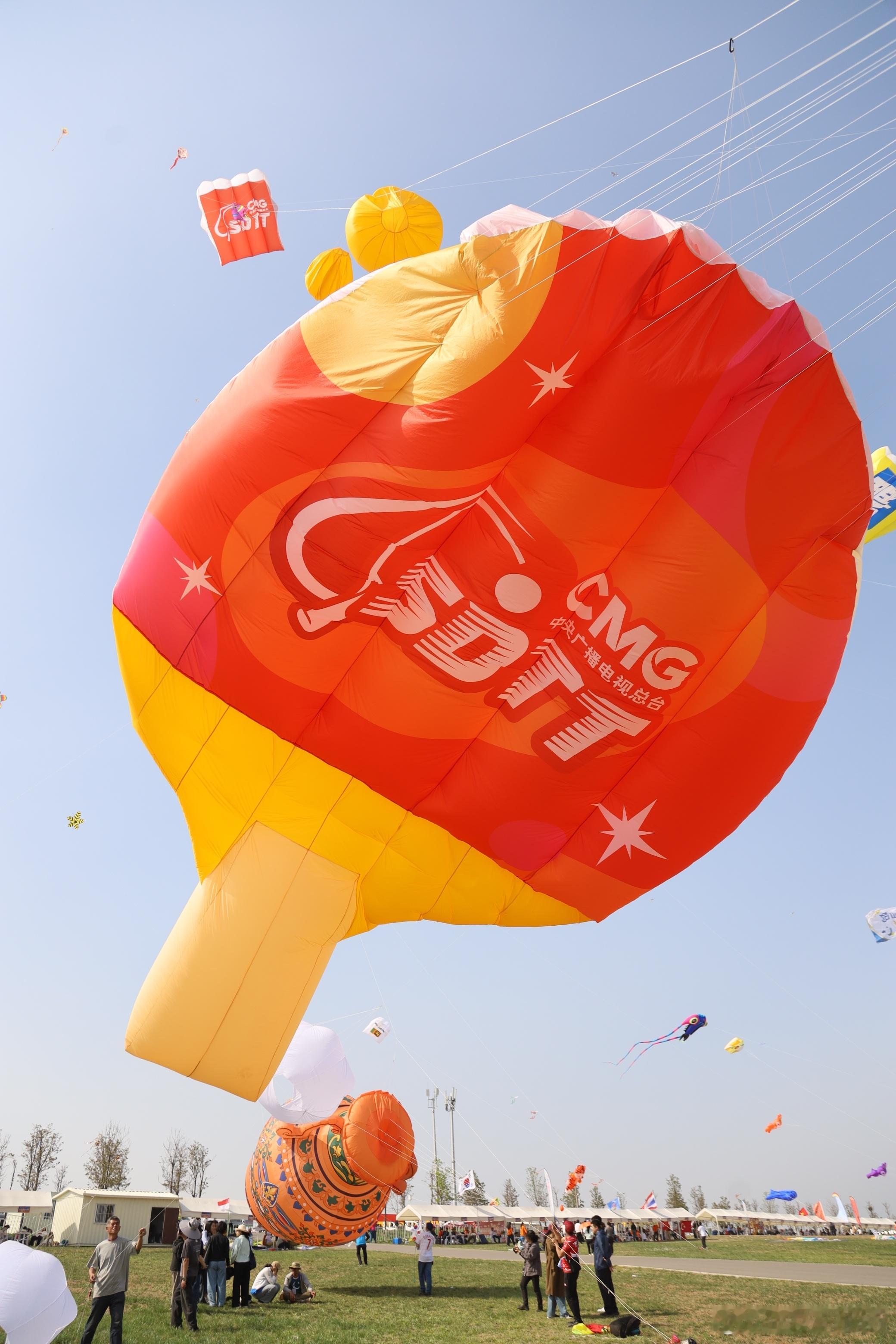 在潍坊风筝节看到好大的乒乓球拍潍坊风筝节潍坊风筝节从不缺惊喜,乒乓球拍风筝腾空而