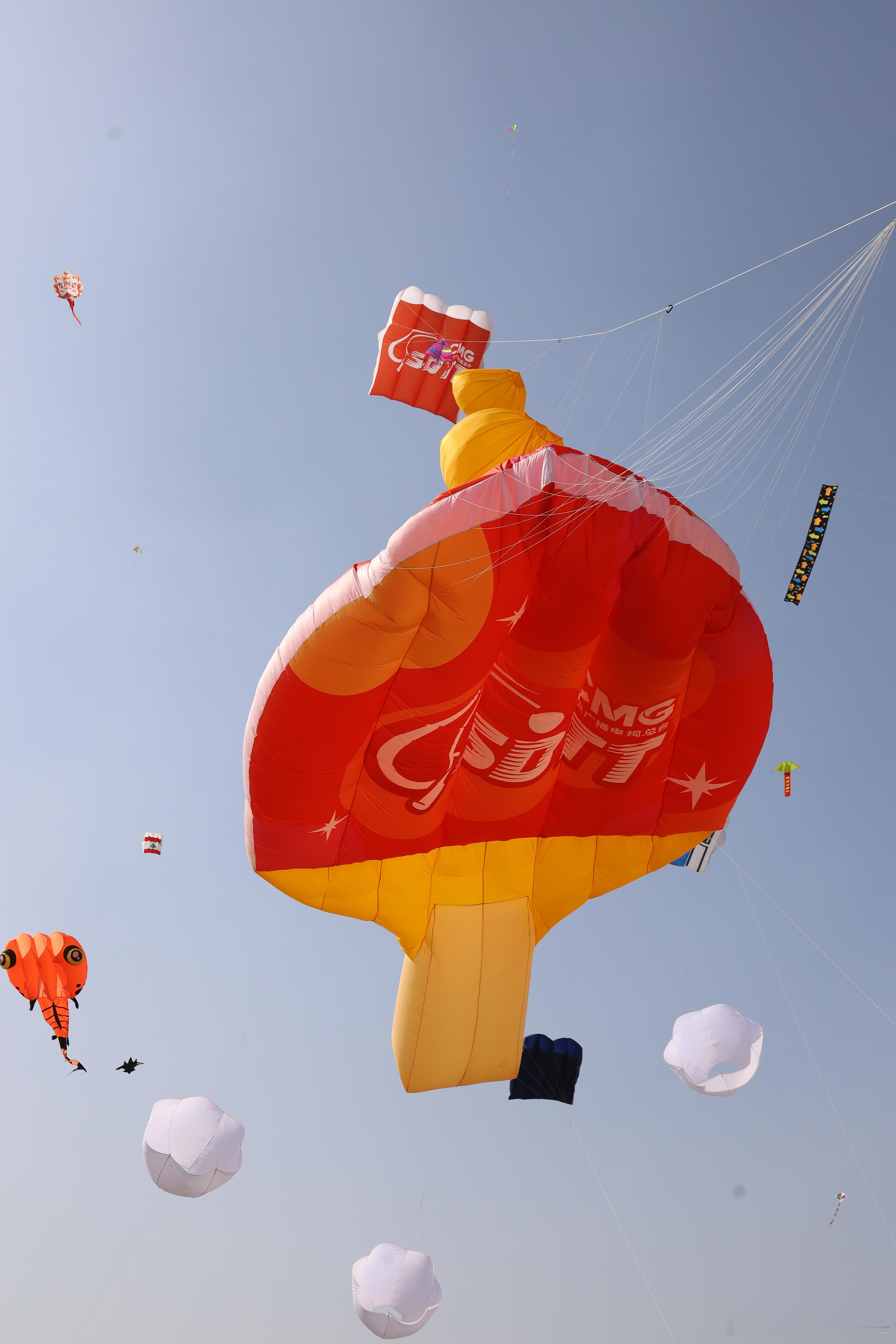 在潍坊风筝节看到好大的乒乓球拍潍坊风筝节潍坊风筝节从不缺惊喜,乒乓球拍风筝腾空而起,造型独特趣味十足,彰显潍坊人的奇思妙想。