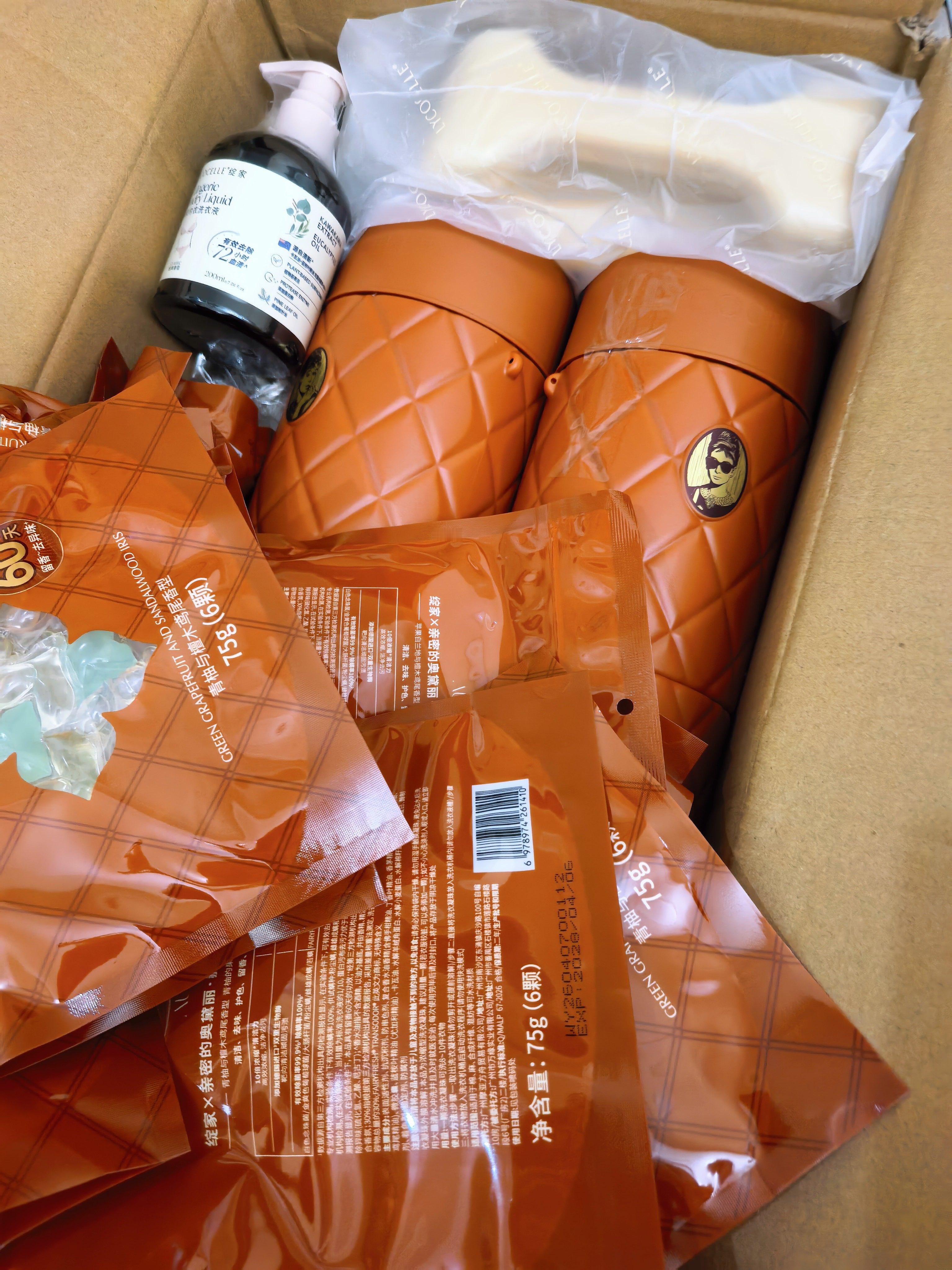 你还别说,绽家这箱礼盒还有点重搬回来懒得等电梯,直接爬到了四楼,手酸。马上拆开洗