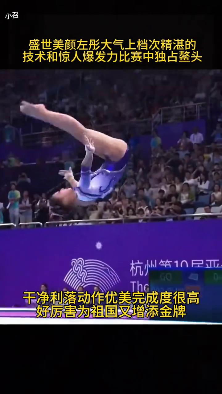 盛世美颜左彤大气上档次,精湛的技术和惊人爆发力比赛中独占鳌头。不失力量的美柔中带刚,行云流水般动作漂亮极了,堪称极品弹跳,轻如燕,美到全世界。功夫了得,颜值超棒,一鸣惊人。干净利落,动作优美,完成度很高。好厉害,为祖国又增添金牌。漂亮又有实力,铸就辉煌成绩,被惊艳到了,中国冠军。