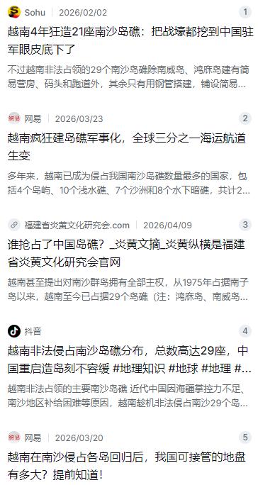 我们不会再有第二次“点到为止”了!越南在南海,正用一堆水泥沙子,想把非法占的地盘给坐实了。这事儿听着就让人上火。越南实际控制了中国29个岛礁。这29个,都是咱们的。