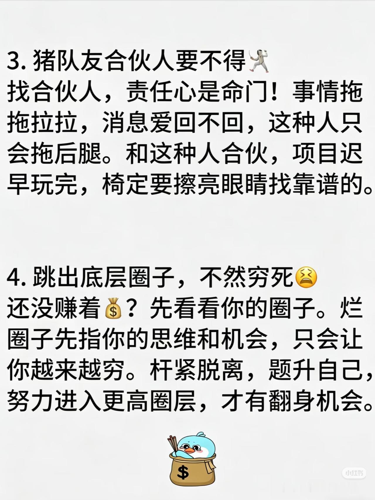 找合伙人先看责任心!遇事拖拉、消息爱回不回的,只会拖垮项目。合伙前擦亮眼睛,别让不靠谱的人毁了你的事业👥