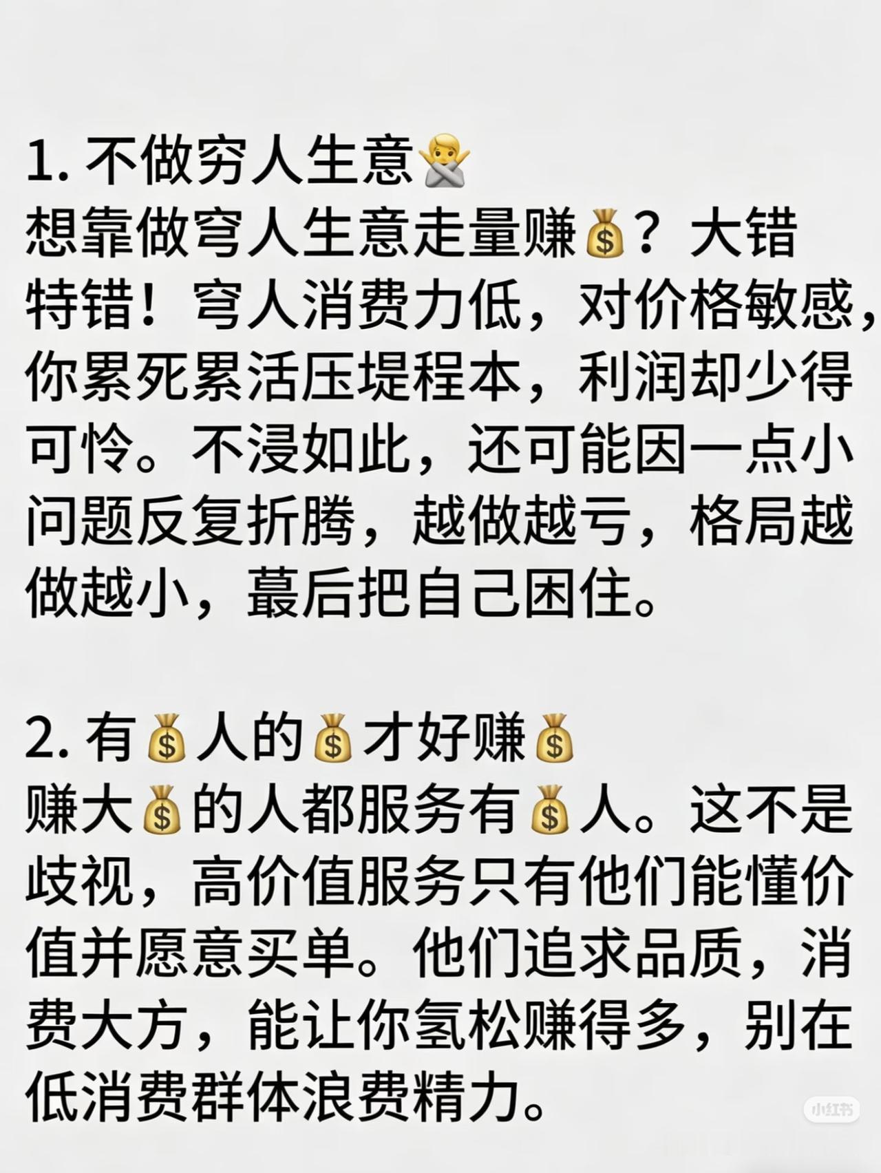 不是歧视,高价值服务只有富人懂价值、愿买单!他们追求品质、消费大方,轻松赚得多,别在低消费群体身上浪费精力🤝