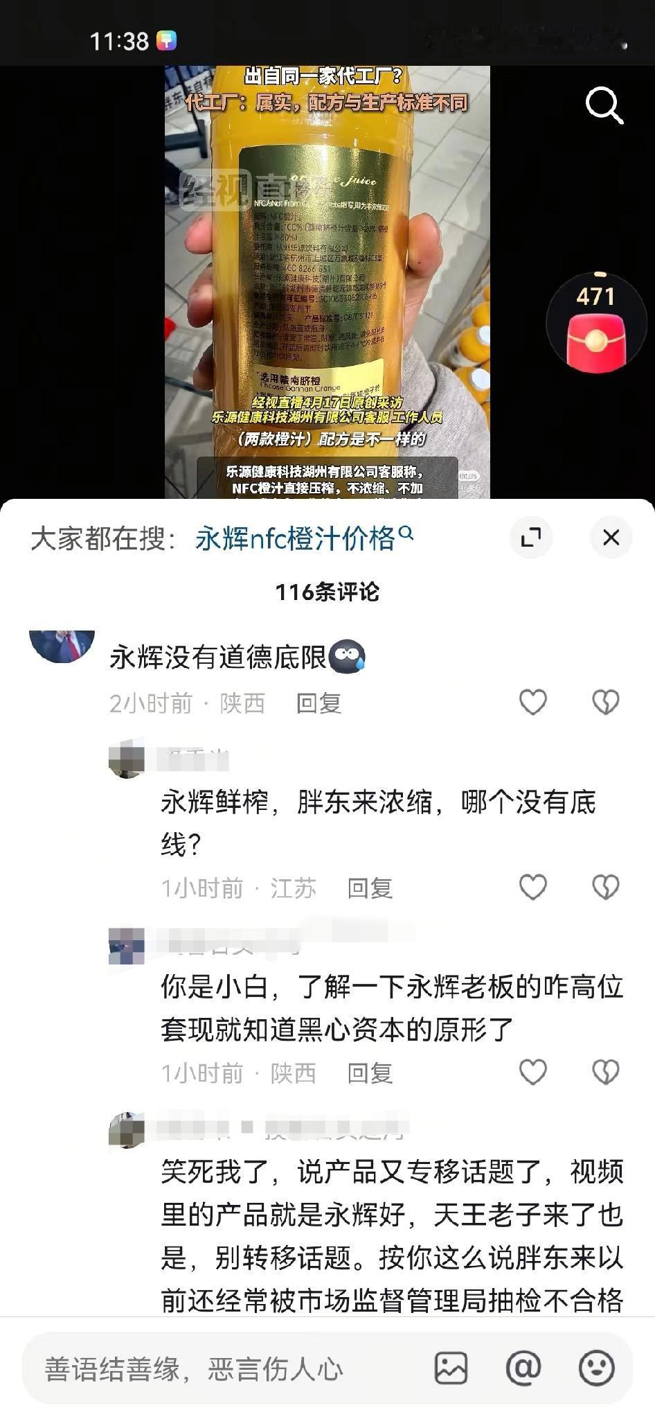 刻板印象!胖东来和永辉自营果汁用的同一家代工厂,明明永辉的是鲜榨,胖东来的是浓缩,但是更多网友认为胖东来的标准更高。