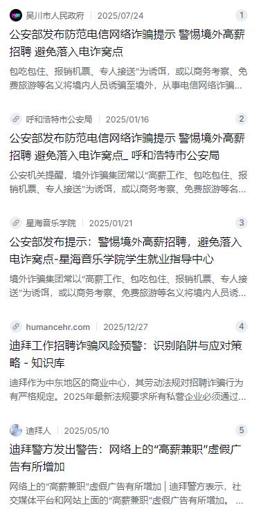 针对这一严峻形势,早在2023年,中国驻阿联酋使领馆就紧急发文,提醒大家提高警惕,千万别轻信所谓的迪拜高薪招聘。2025年,公安部也专门发布防范提示,明确告知境外诈骗集团常用“高薪工作、包吃包住、报销机票”当诱饵,把人骗过去之后再用非法拘禁等手段强迫从事诈骗活动。迪拜警方也公开承认,社交媒体上的“高薪兼职”虚假广告正在增多,不少人已经因此被骗。