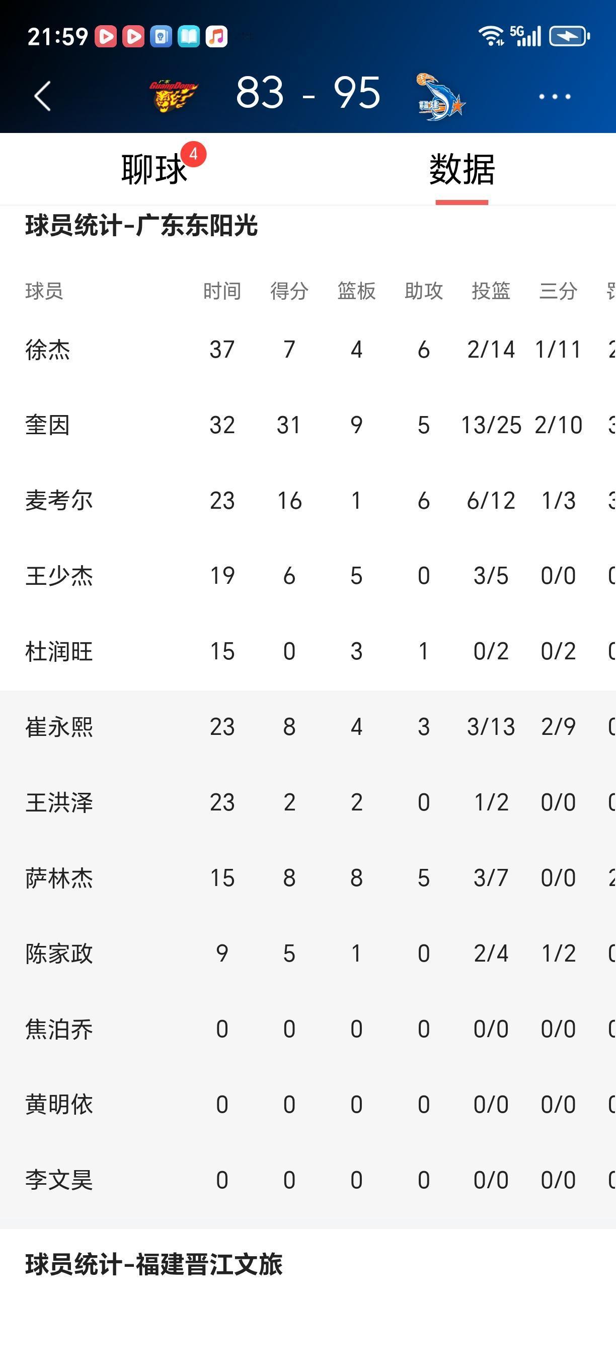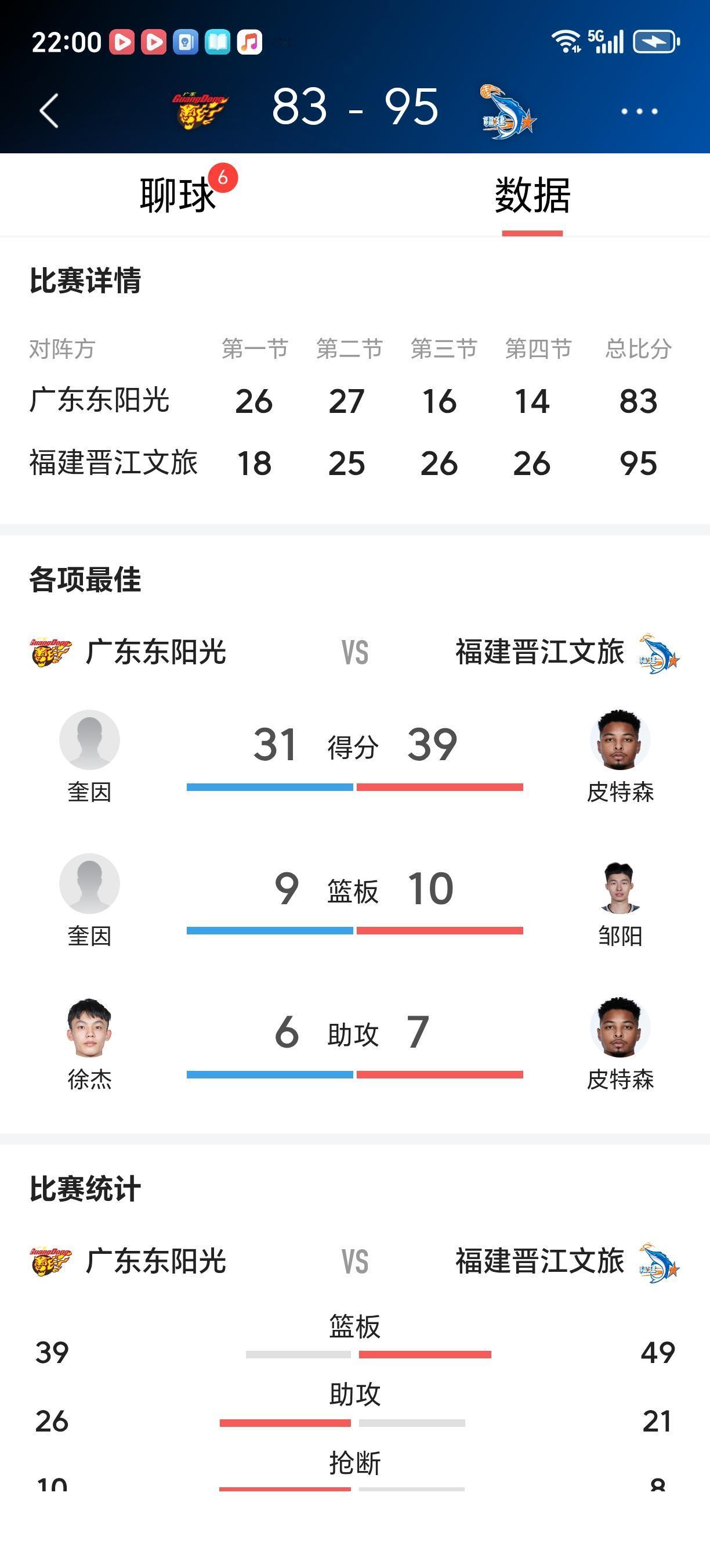 今晚居然在半场领先18分的情况下居然被福建晋江文旅完成了大逆转。