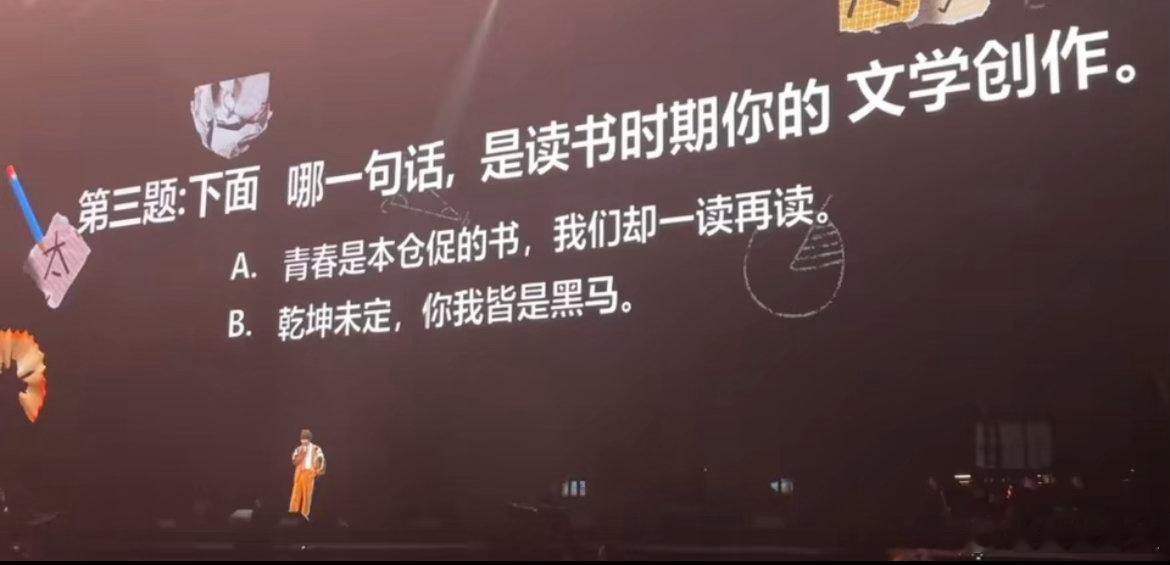 真在徐良演唱会考上试了学生时代欠的满分被徐良还上了 徐良是真懂什么叫“青春”的,这一道道题看着看着回忆全部拉到了过去,演唱会更像是时光机,脑子里都是闪回。谁不怀念学生时代的自己啊。