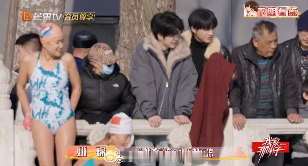 我家那小子姚琛与黄誉博挑战冬泳 冬泳这段看着就冷,但姚琛和黄誉博跳得挺干脆。年轻就是本钱,敢想敢做。下期节目播出后,这段应该会被反复截图。