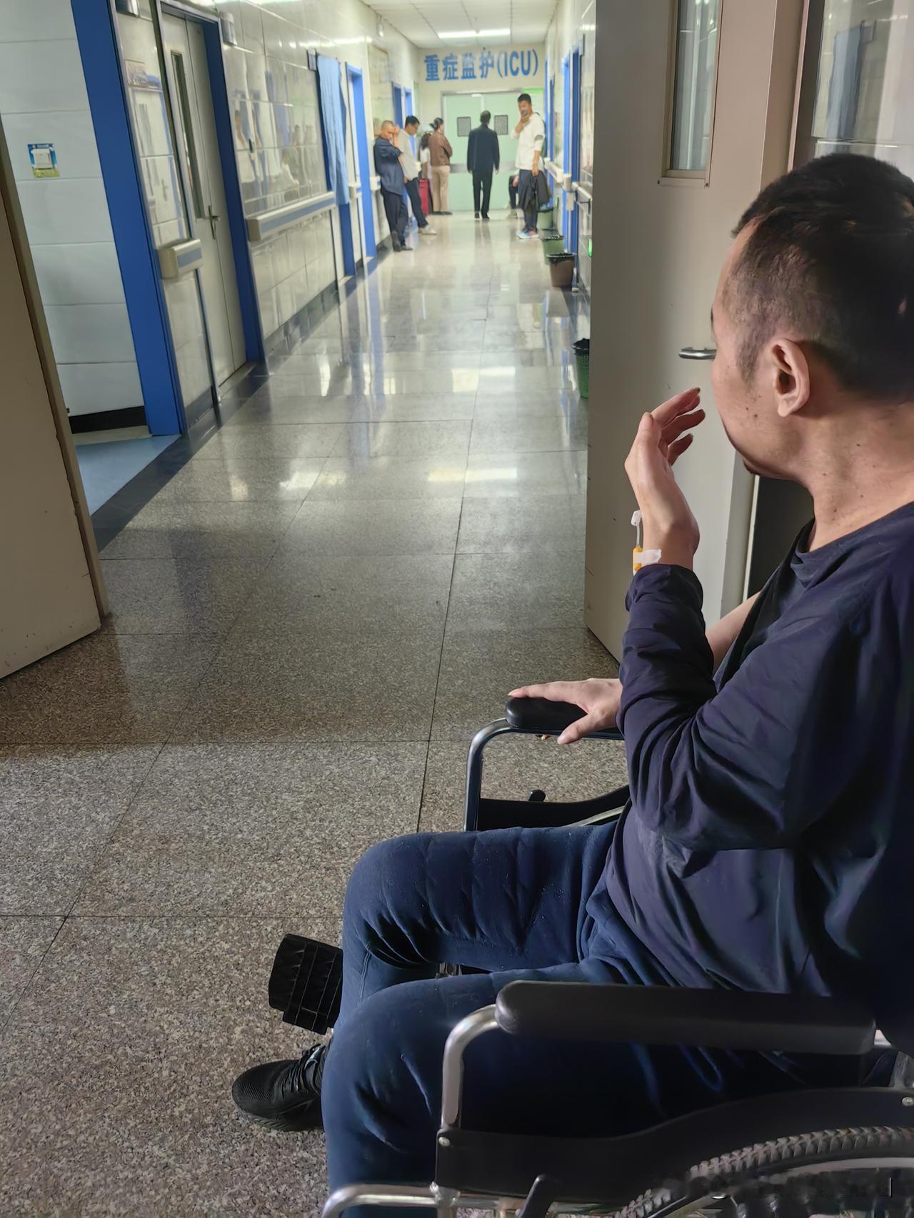 在旁边坐着的轮椅大哥他就住在重症监护室旁边的病房,他说这的监护室也不知道咋回事就星期六星期天出车祸的人进来的多。