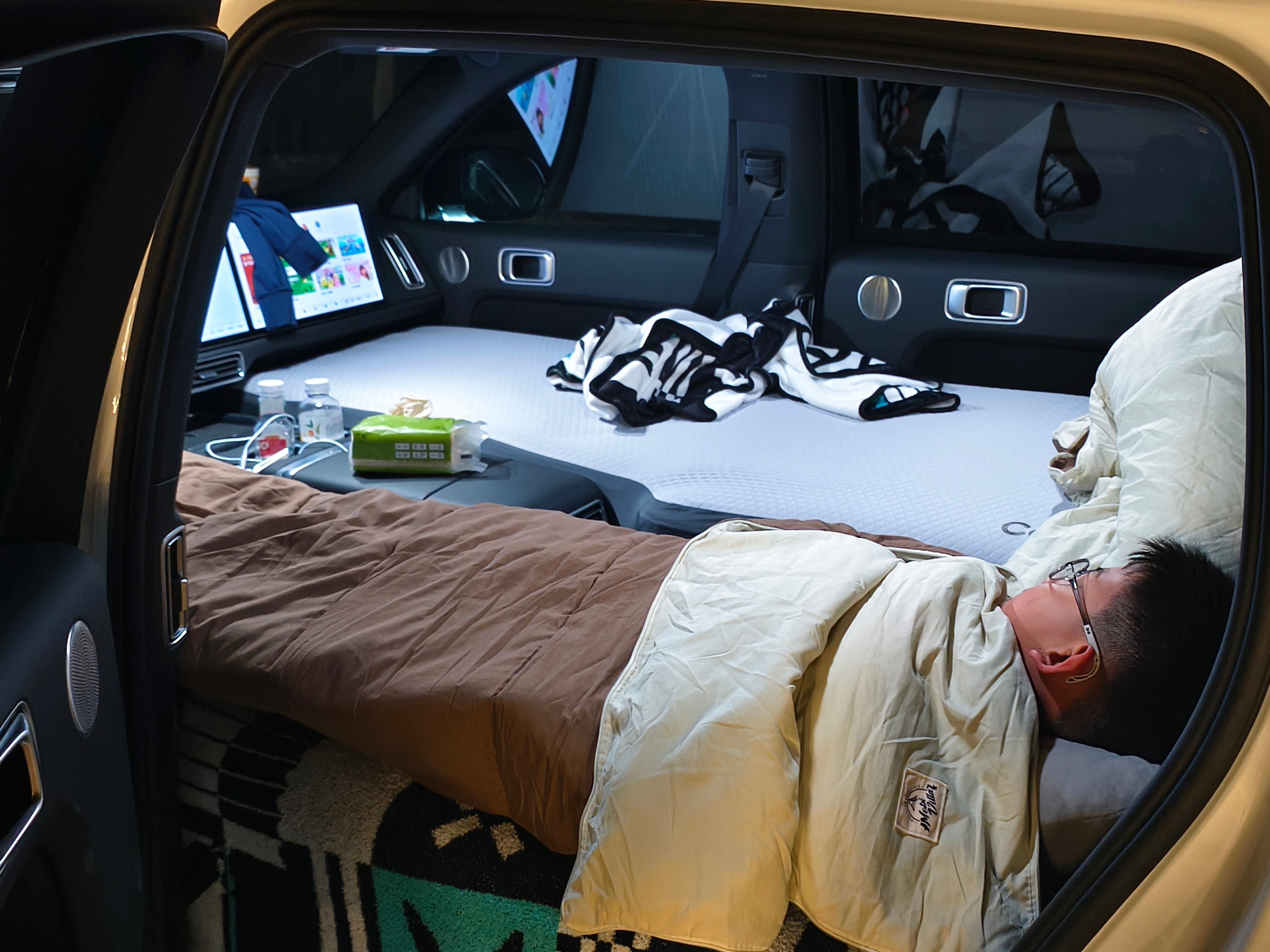 今天出来三台车,理想L9+理想L7+坦克400,都睡车里。而且车内床垫也经过我们多次实际体验评测,升级为最新的舒适款。当然了,上班的时候中午午睡也能用。