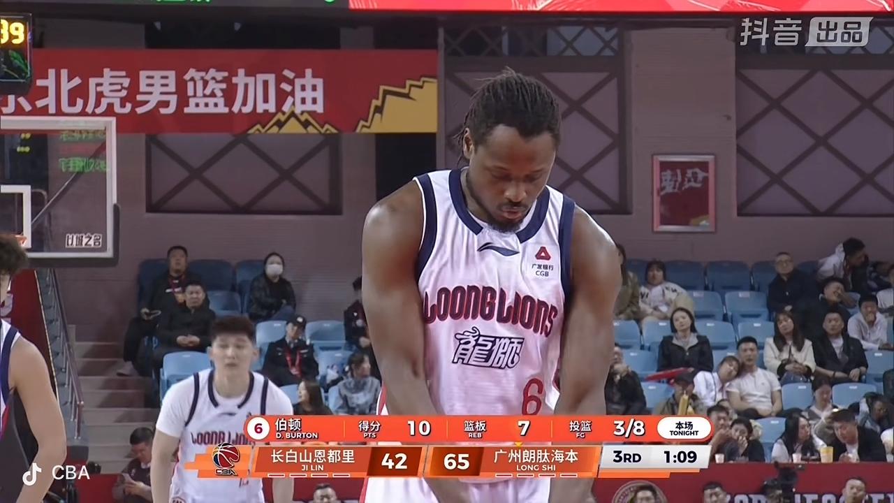 在刚刚结束的吉林长白山恩都里男篮主场迎战广州朗肽海本男篮的第三节比赛中,吉林队暂时以45比68落后。