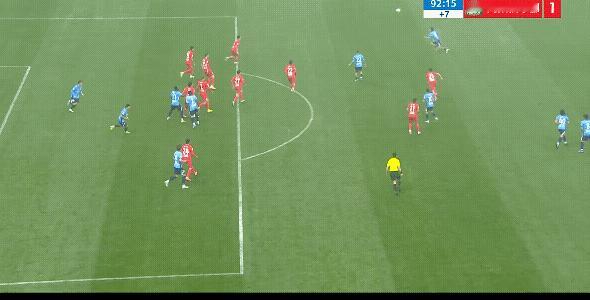 比赛第92分钟大连英博球员吕倬毅禁区外远射破门,帮助大连英博反超比分,今晚大连英博球迷真的看了一场过瘾的比赛,从球队落后到扳平到反超,真的太刺激了!