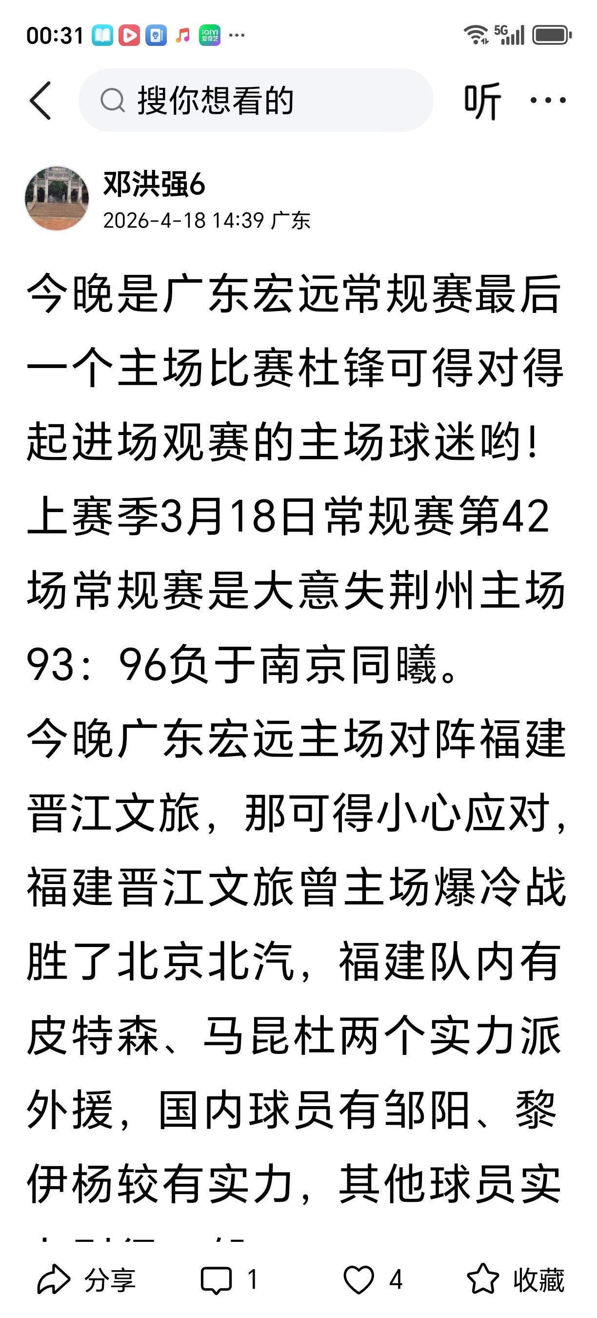 昨晚的比赛上半场曾经领先18分,我想在这个答谢球迷之夜广东宏远应该是顺风顺水拿下比赛啦吧!