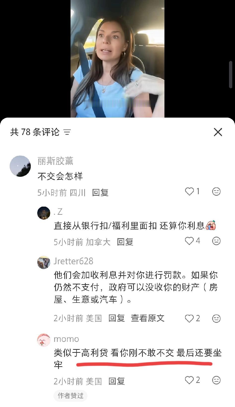 有人问不交会怎么样,得到的回答是他们有的是办法让你交钱,会从你的财产开始,最后如果你资不抵债还会坐牢,整个人都成为某个公司的财产,这就是美国百姓知道其他国家百姓的生活后对自己的生活感到厌恶的原因,政府只管收钱,他们能享受到的政府服务却几乎等于零,美国政府现在只管收钱,并且收钱的频率和由头已经多到让普通人难以忍受的地步。