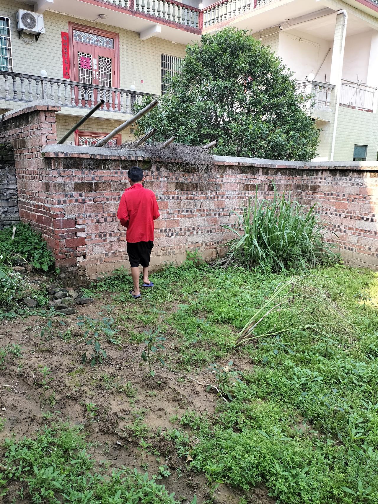 他站的那个位置是种的辣椒苗,全部是草,我叫他去拔草,但是蚊子多,盯他的脚,他就跑掉了,夏天在农村是不能穿短袖短裤的。