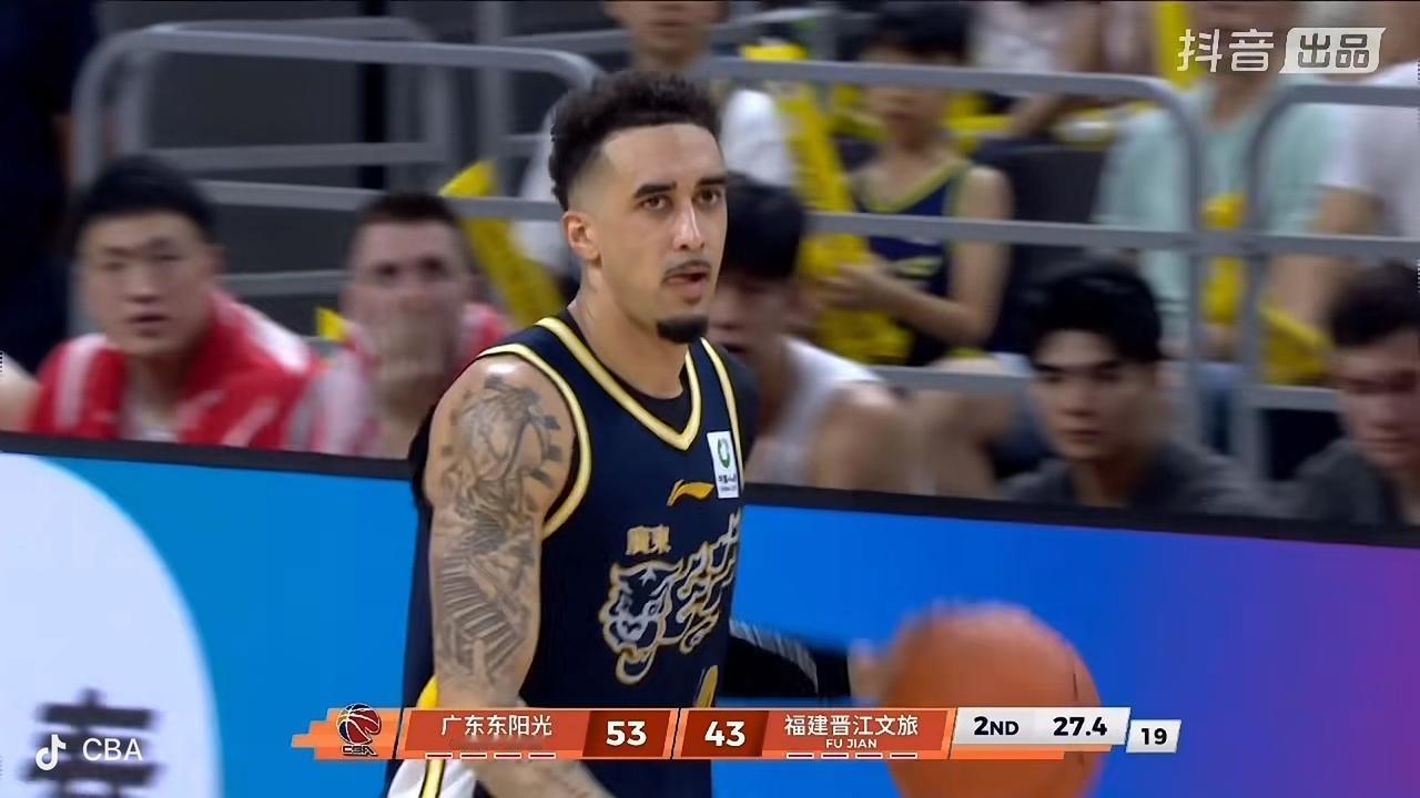 在刚刚结束的广东东阳光男篮主场迎战福建晋江文旅男篮的上半场比赛中,广东队暂时以53比43领先。