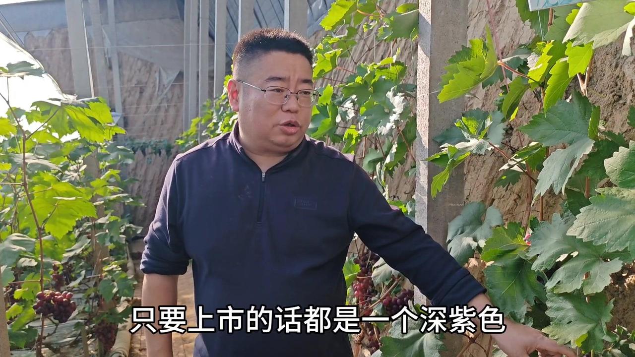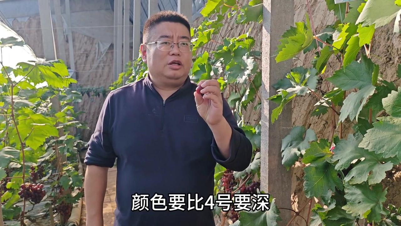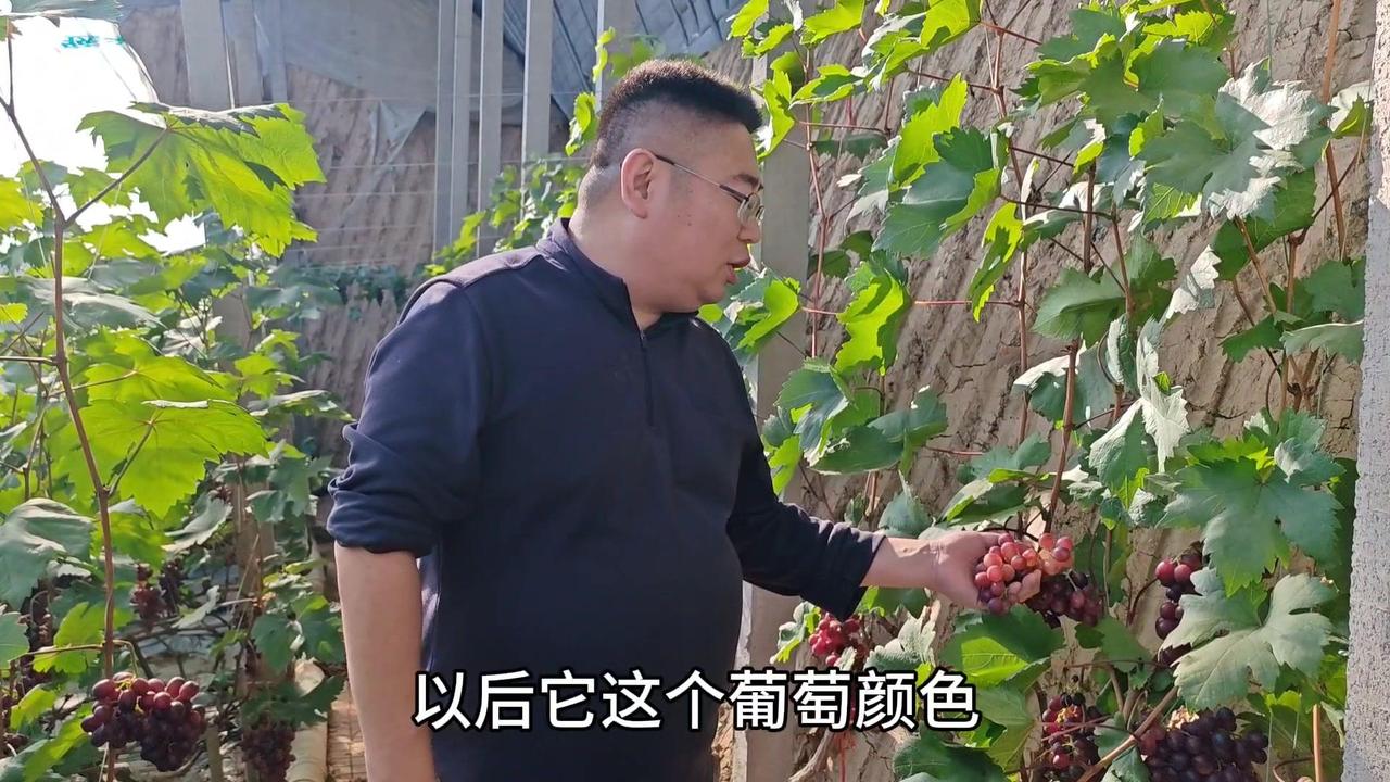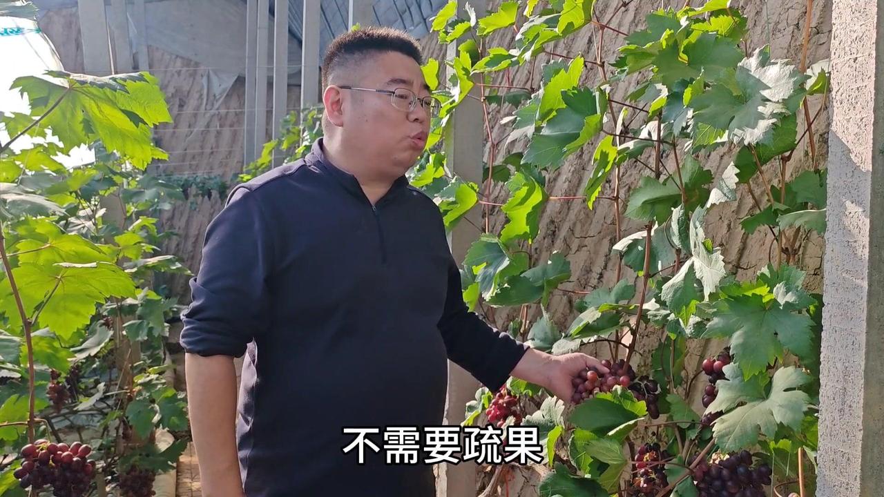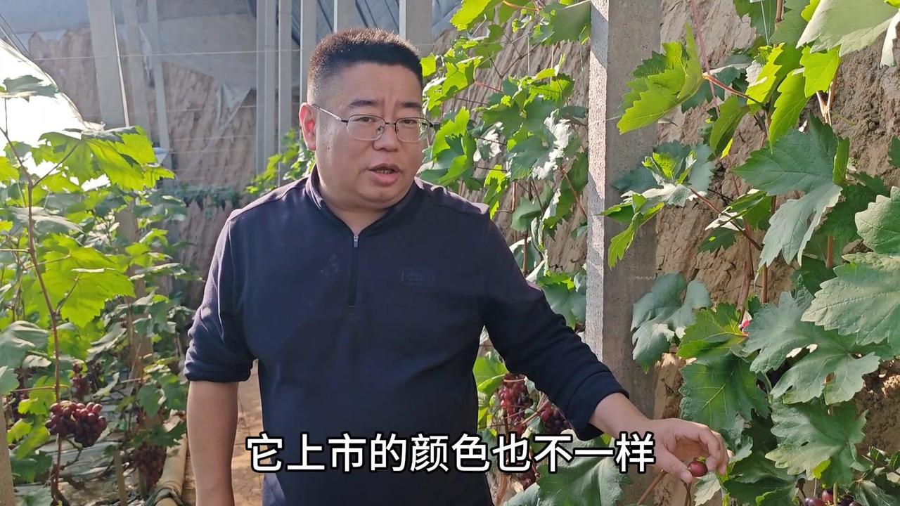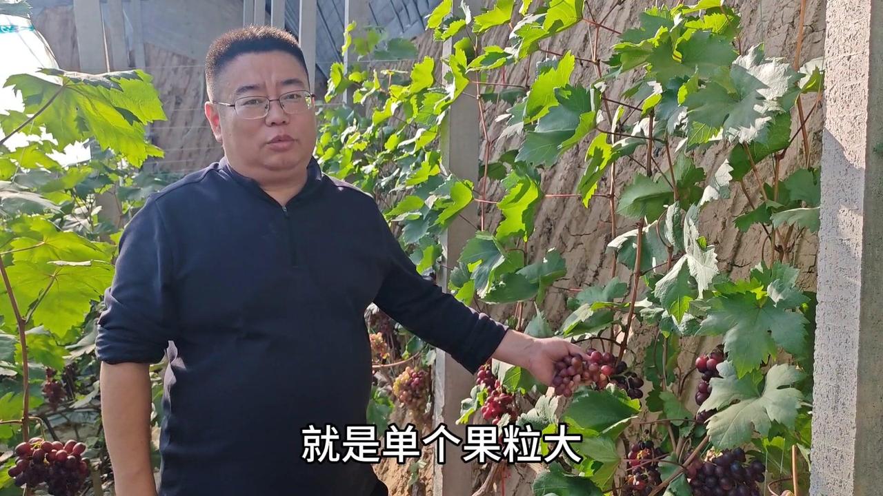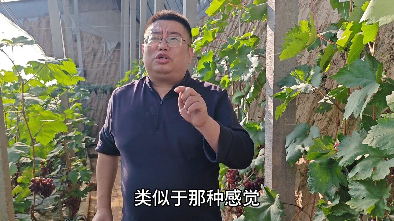 它单果粒大,不用太多修穗操作,省人工成本。果型椭圆形,颜色是喜庆的淡红紫色,上市时会变成深紫色,视觉上很吸引人。吃起来超清脆,汁水足,甜度比春红3号高,像吃甘蔗那样甜而不腻,还有小软籽但能直接吞咽,口感佳。