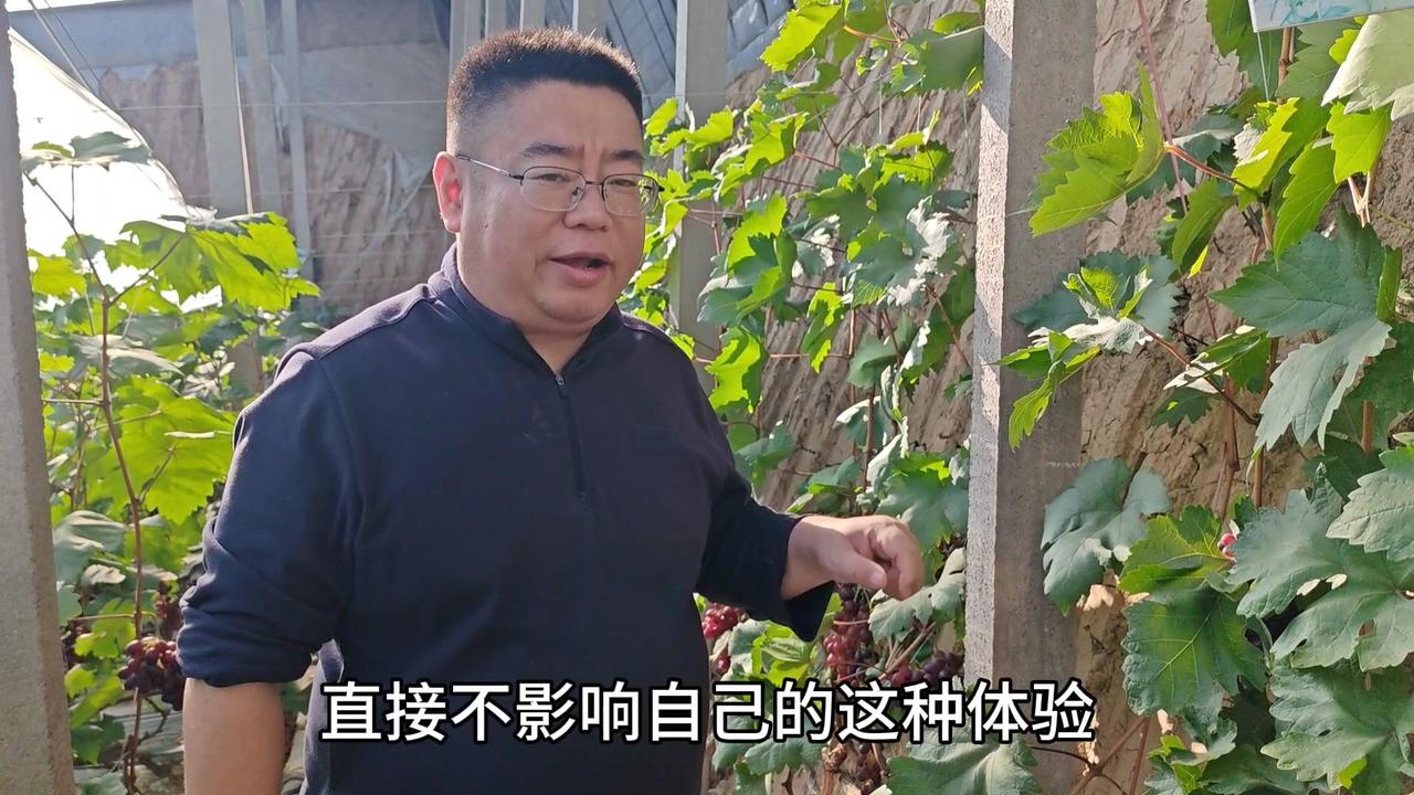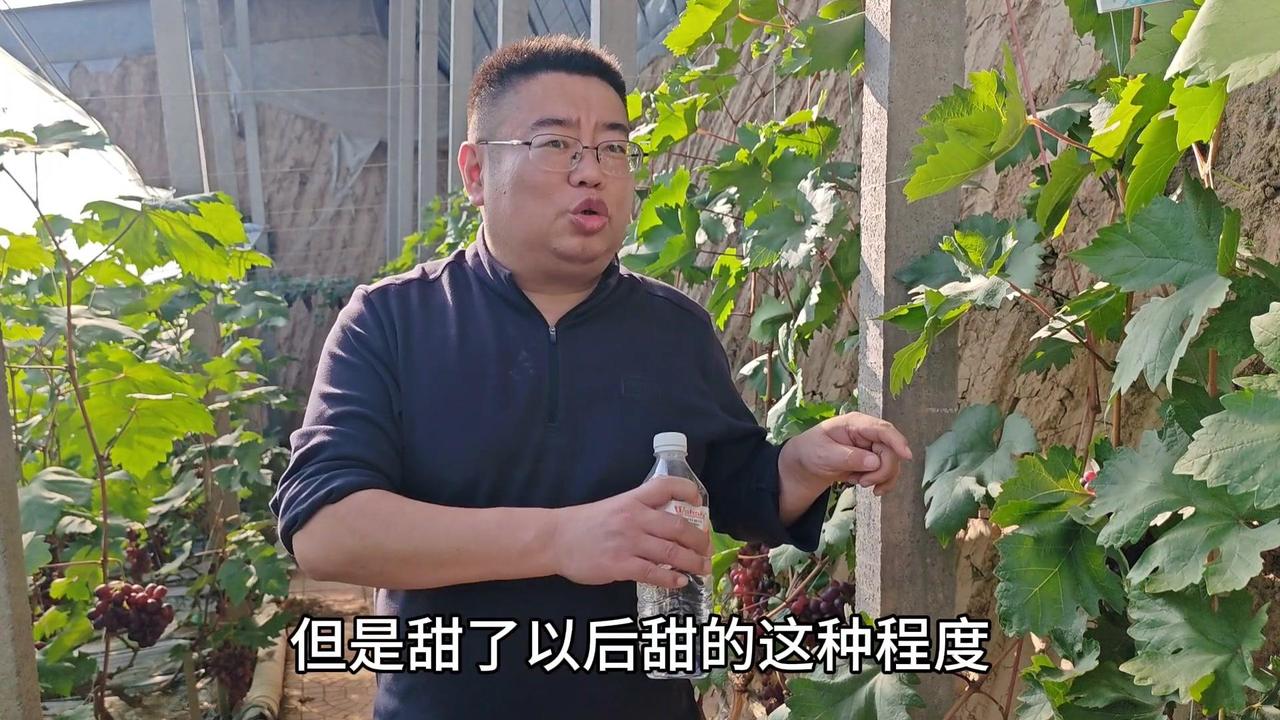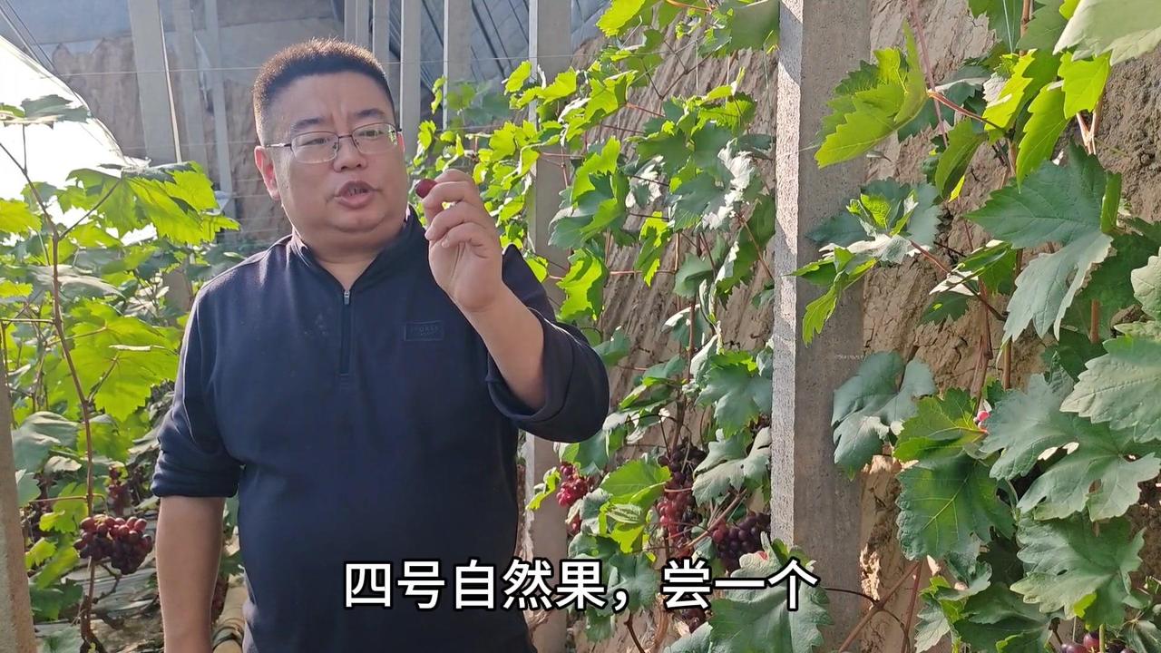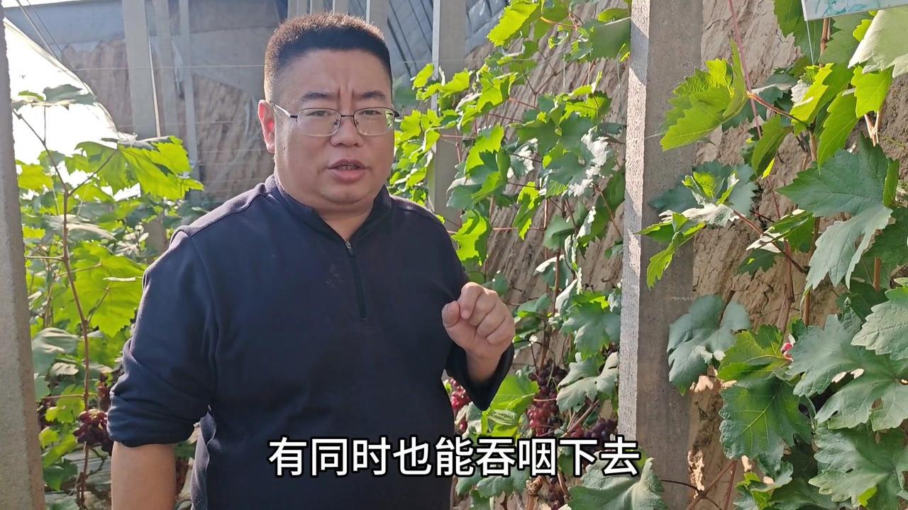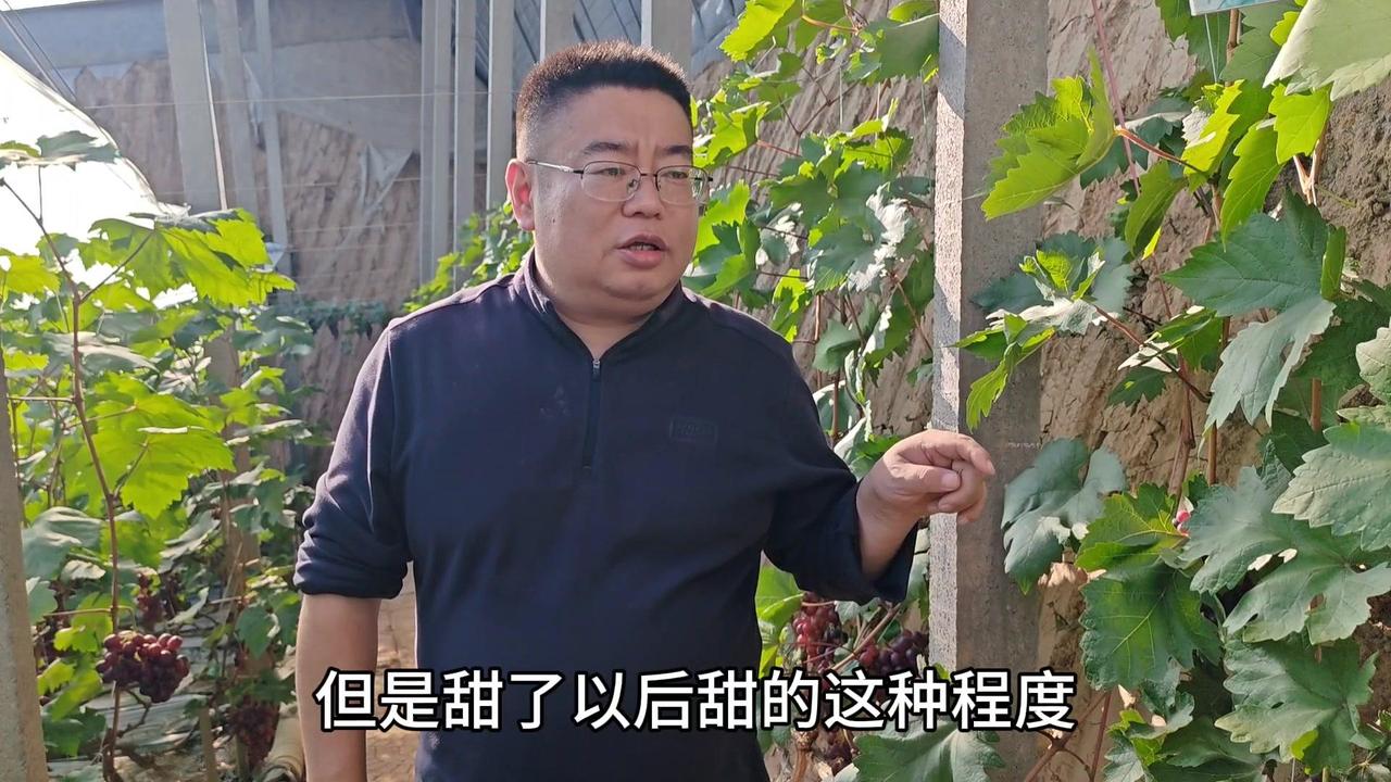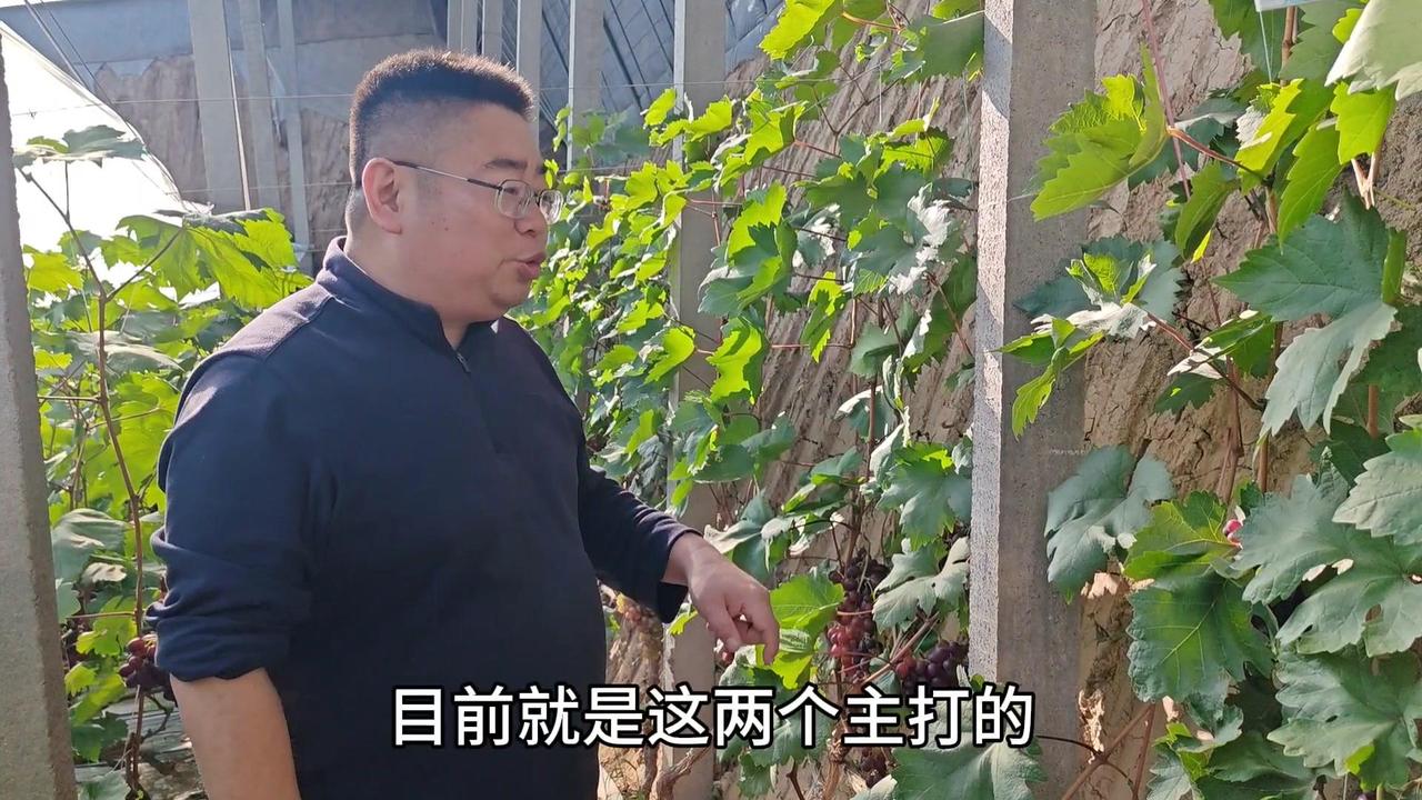 它单果粒大,不用太多修穗操作,省人工成本。果型椭圆形,颜色是喜庆的淡红紫色,上市时会变成深紫色,视觉上很吸引人。吃起来超清脆,汁水足,甜度比春红3号高,像吃甘蔗那样甜而不腻,还有小软籽但能直接吞咽,口感佳。