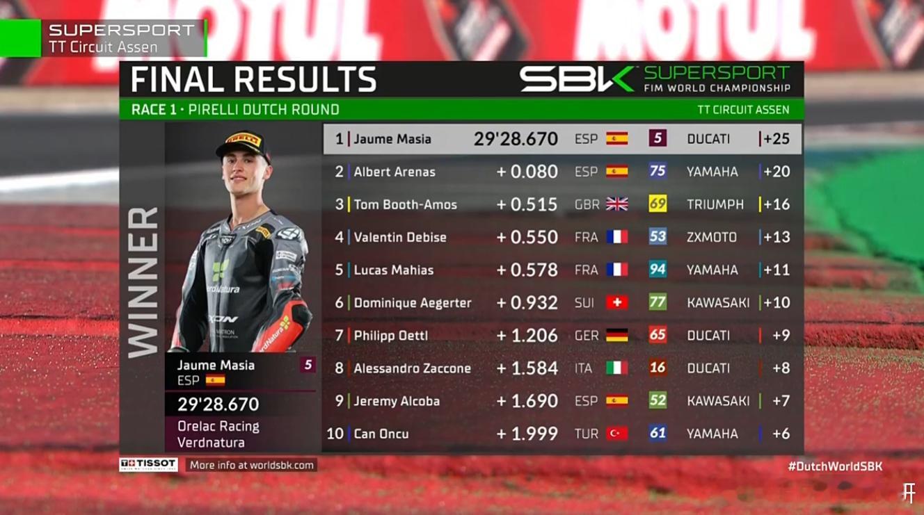 2026 WSBK 荷兰站,张雪机车第三名冲线,但因违规判定第四。 QJMOTOR赢得本赛季挑战赛登录领奖台!