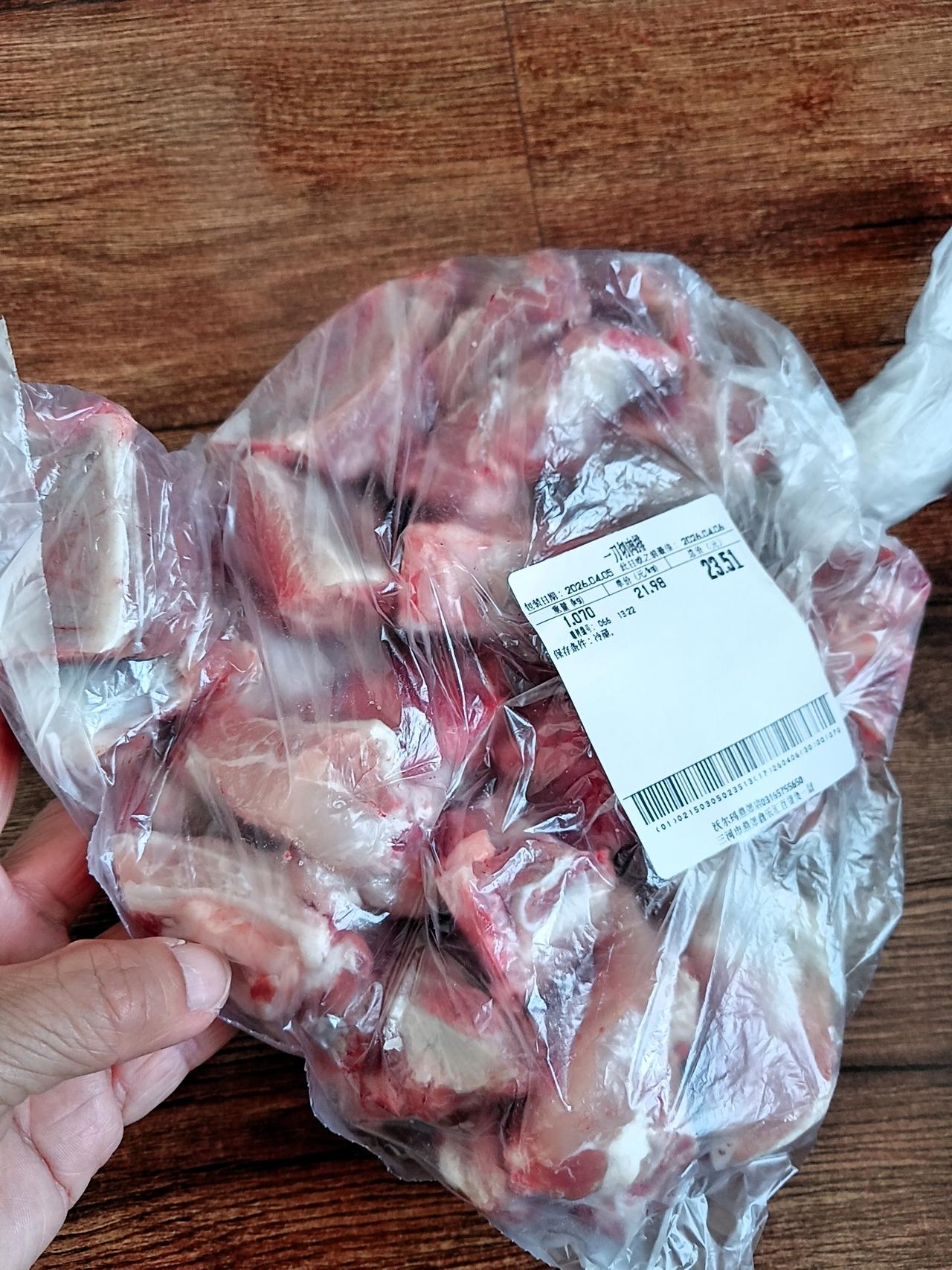 看了看品质和标价,都特别亲民。尤其是那排骨,才十块零几毛一斤,就剩两块了,称完才23块钱,直接拿下。