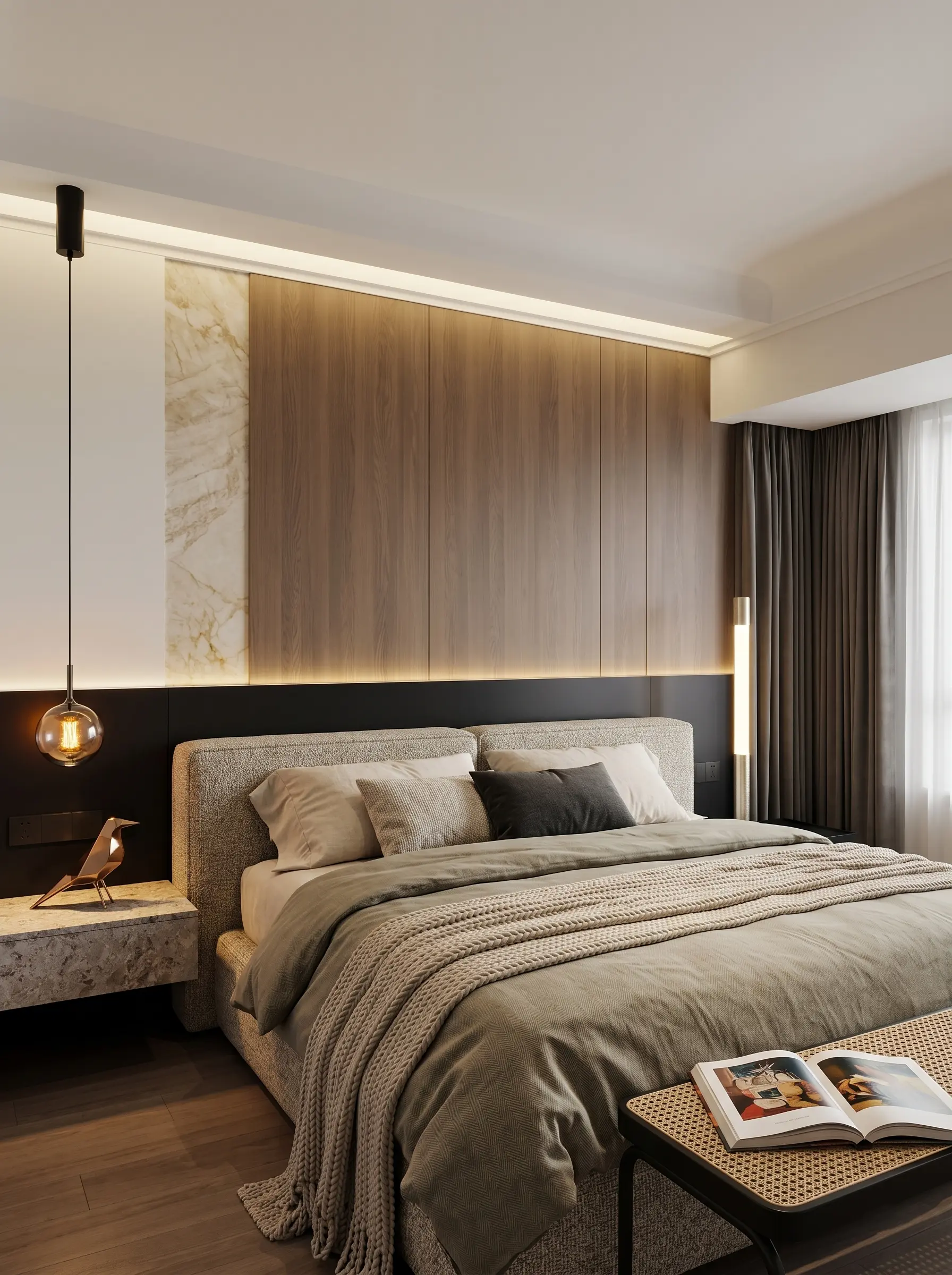 不用过度装修!白墙+胡桃木高级到没边😎。+胡桃木配色法⚪🟤 简装也...