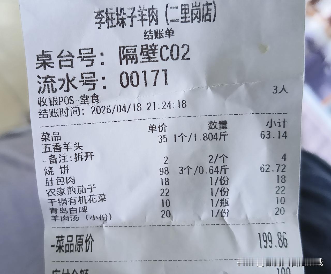 昨天从洛阳来到郑州,经朋友介绍来到二里岗”柘城李柱垛子羊肉”清真店。这家豫东30年老店能开到省会郑州立足,羊头、羊肉汤等各种羊肉美食的确不错。我们点的是1个五香羊头(63元)、3个肚包肉(62元)、羊肉汤1份(20元)、农家煎茄饼1份(18元)、干锅花菜(22元)、芝麻烧饼2个(4元)。吃的羊头是拆开的,不应该这样吃,而是要吃整个羊头,手抓吃才更有味。另外他家的羊肉汤是纯甜了,不放盐和味精,与洛阳的汤一样可以添汤喝,但比洛阳羊肉汤要好喝多了,而且羊肉也不少。春日生活打卡季