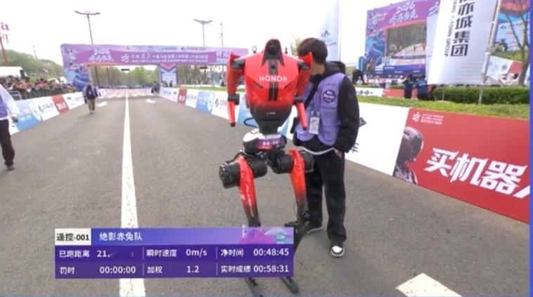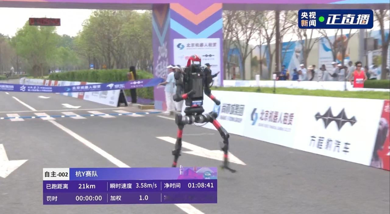荣耀不是做手机的吗?做机器人怎么也那么厉害!!!机器人半程马拉松,荣耀自主机器人011雷霆闪电队用时51:02目前是半程马拉松第一,宇树科技机器人是自主机器人用时1:08:42,由于半路摔倒三次,耽误一些时间。