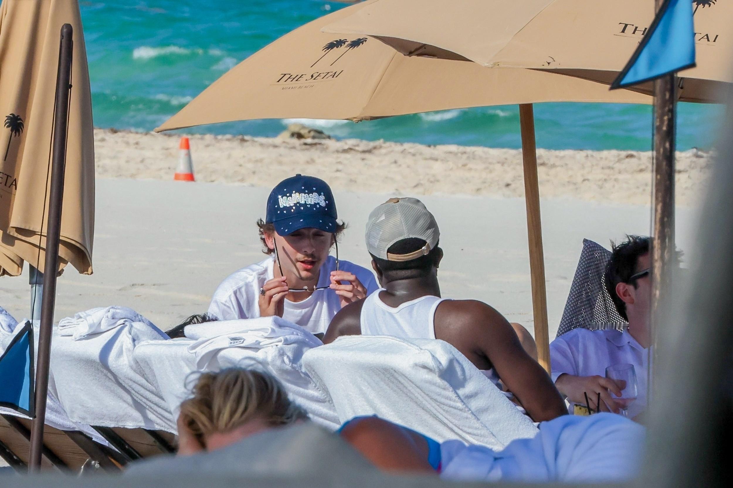 「橘皮一哥」Timothée Chalamet 近日和好友在迈阿密知名网红奢侈度假酒店“The Setai Miami Beach”的沙滩上晒太阳。
