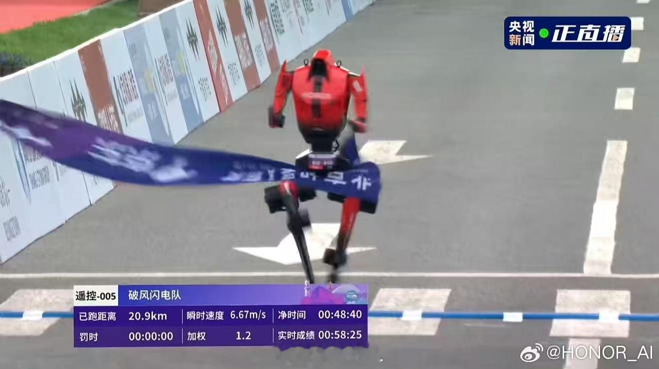 看着闪电在起点那稍显稚嫩和拘谨的跑姿,再到终点前那坚韧又自信的神态,这次冠军,无疑是荣耀「阿尔法战略」落地进程中的一个里程碑。要知道,闪电的完赛成绩是20分26秒,甚至超越了人类的记录!