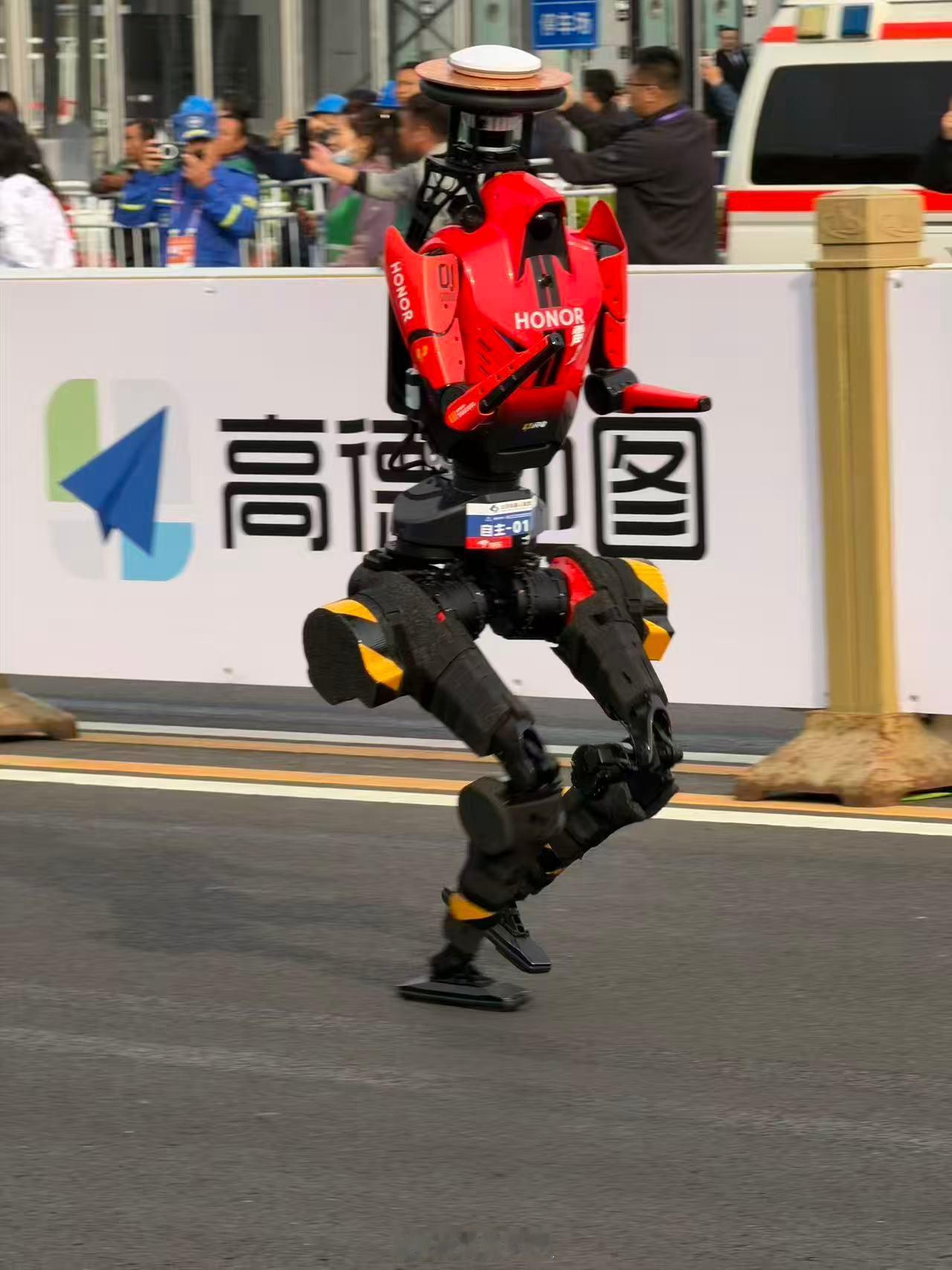 机器人半马冠军出自荣耀 今天是亦庄机器人半马比赛日,也是荣耀第一次以终端厂商的身份,跨界参加双足机器人领域的正式比赛。无论是科幻片,还是现实生活,机器人的移动往往都是通过履带或轮子来实现,这样更为高效----但也正因为此,使用更为拟人的双足机器人跑半马,就更对设计提出更更苛刻的要求----关节模组的性能和稳定性如何?动态运控算法如何?路况感知如何?电续航如何?热管理如何?路遥知马力,日久见实力,想让具身智能机器人跑完半马,任何领域都不能偏科,否则很快就会在20多公里的长跑中败下阵来。