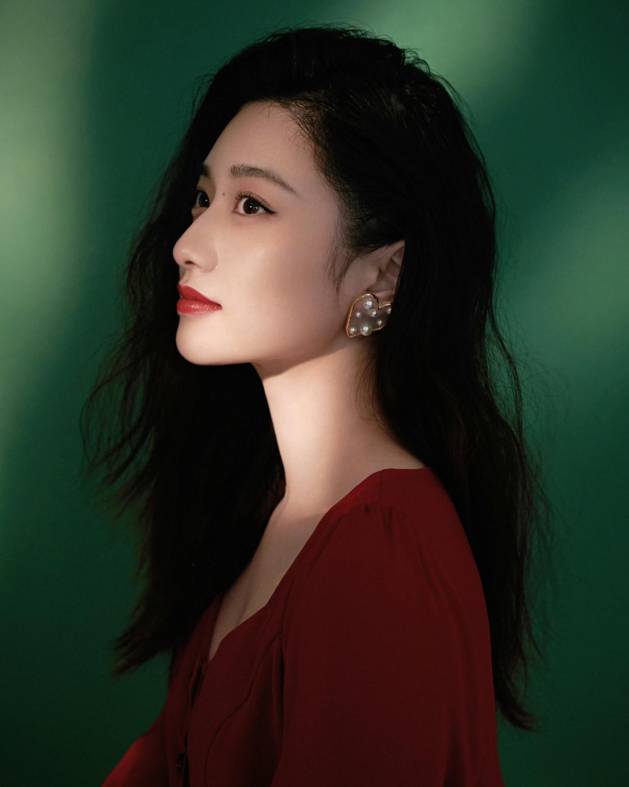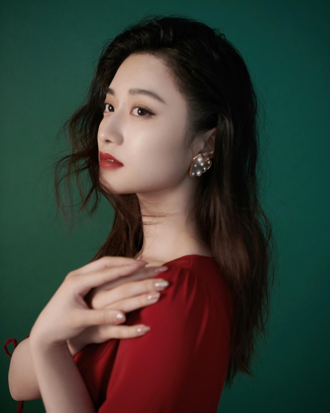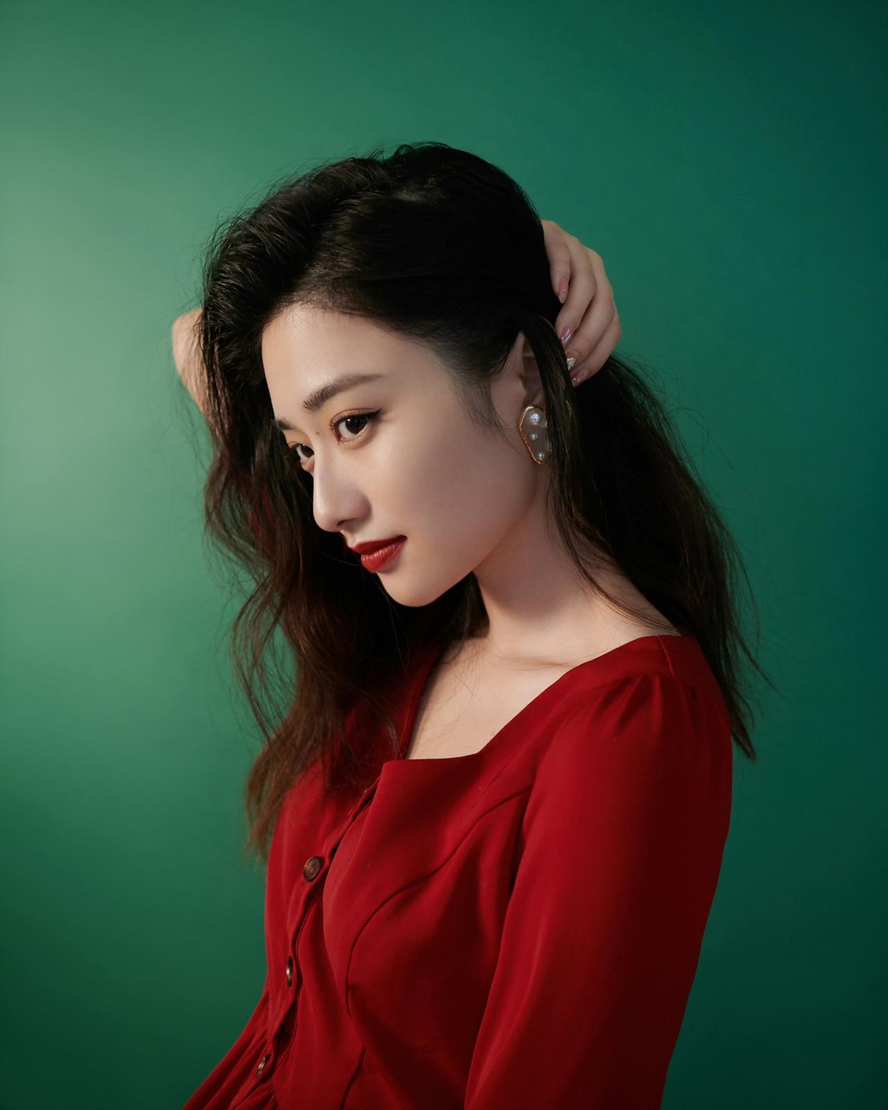 一抹浓烈的红,撞进深邃的绿里。光影落在侧脸,把温柔与热烈都揉进了镜头里。