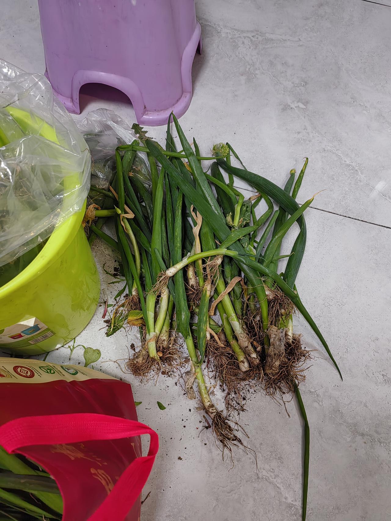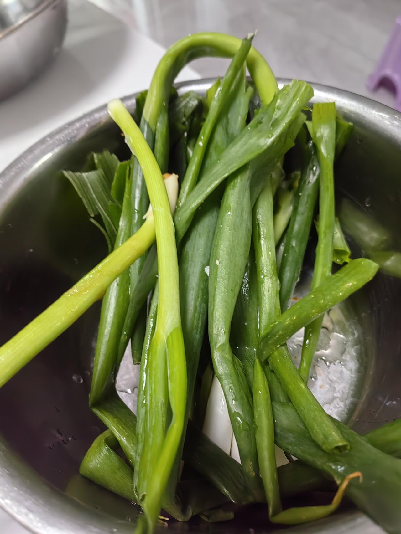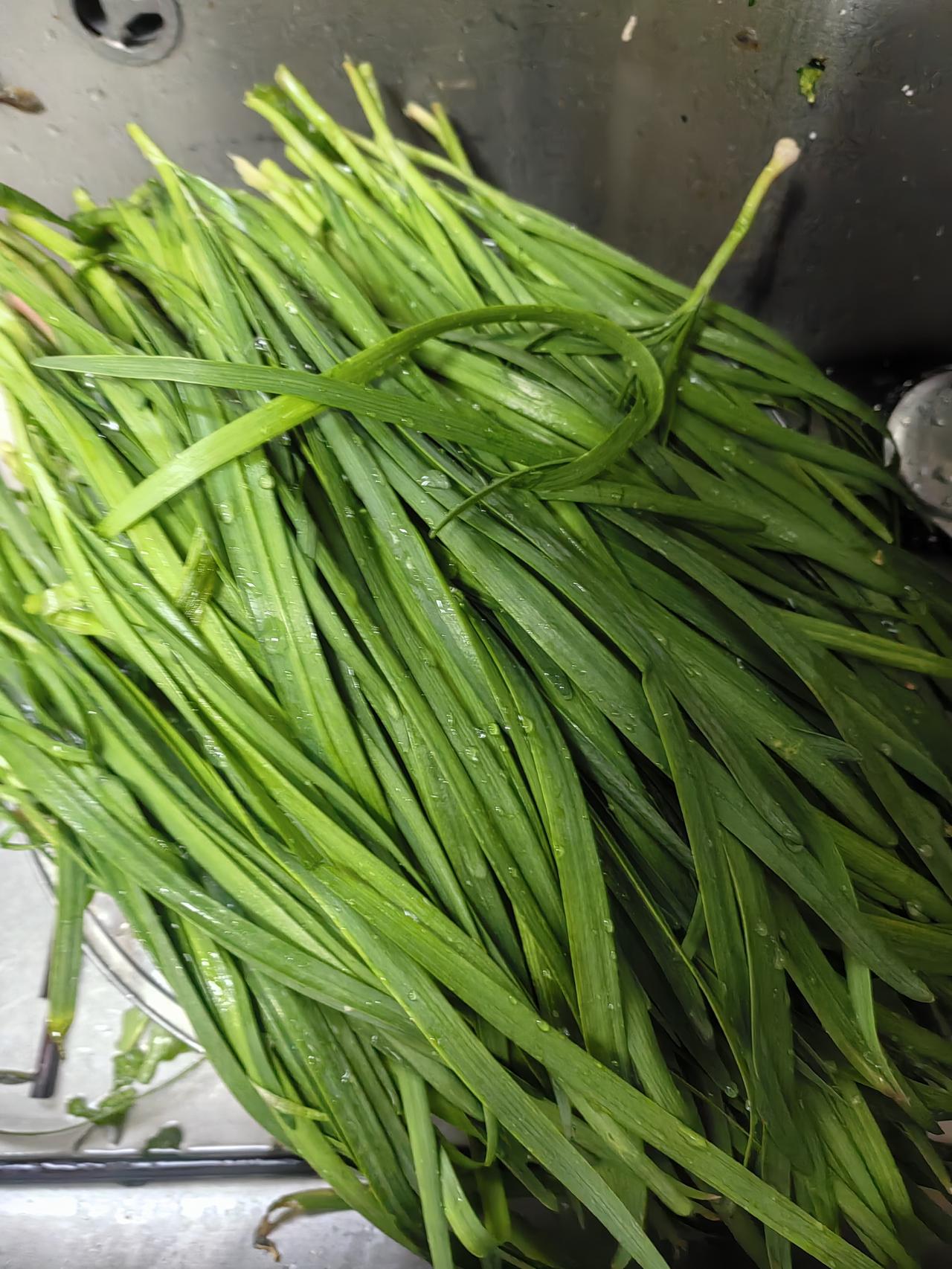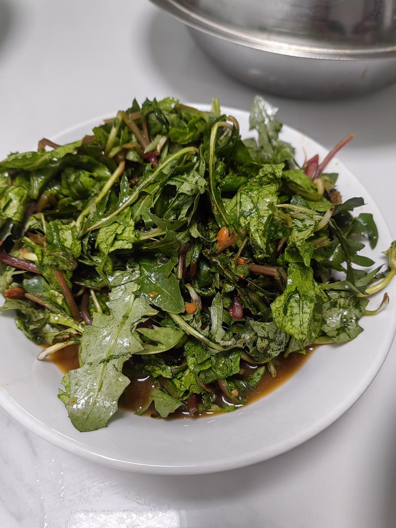 昨天大哥让我割韭菜吃,没让他邻居割。这韭菜啥药没打,长的真好。昨晚我吃的那两位女士的榆钱窝头,海天酱拌水萝卜苗,蒲公英,曲曲菜,大葱蘸酱。南方人没有这么吃的,北方人,尤其是东北人,都爱吃蘸酱菜,我也爱吃。从小就这么吃。蘸酱菜可以是小葱,尖椒,萝卜,黄瓜,曲曲菜,蒲公英,苦麻子也可以吃。那天我在文化中心,一位姐姐正在挖苦麻子吃。想想也是,只要兔子能吃的,人都可以吃,前提是口感好,下次我也试试苦麻子包饺子吃。