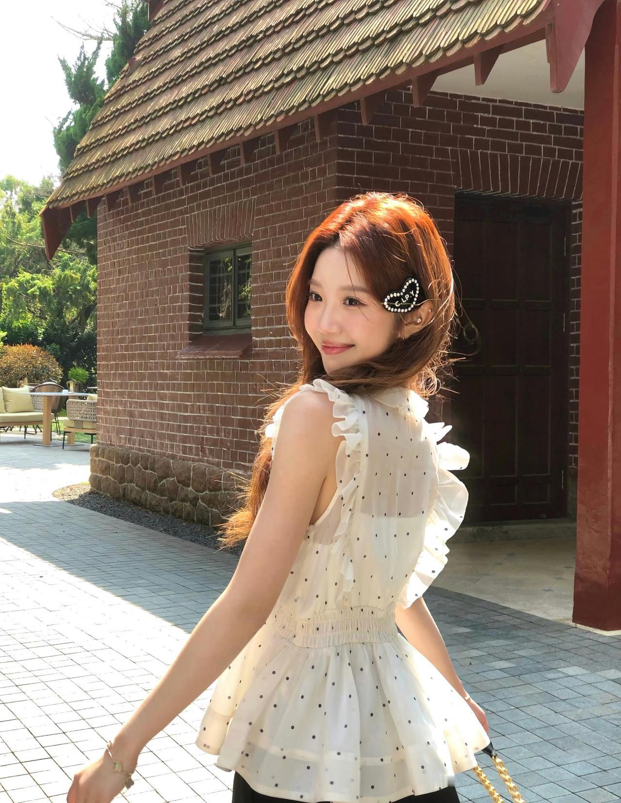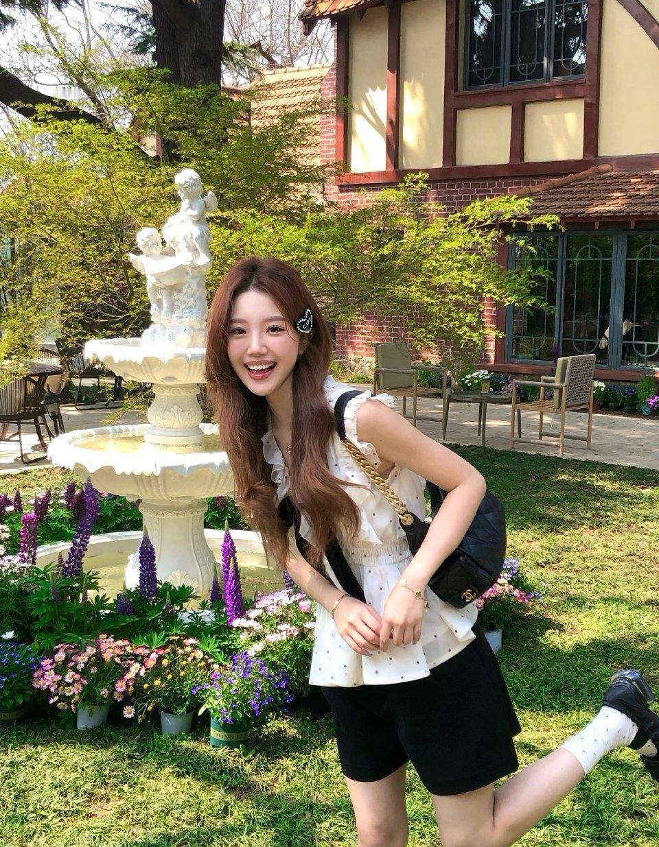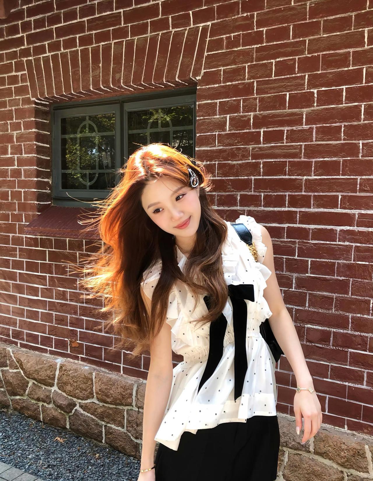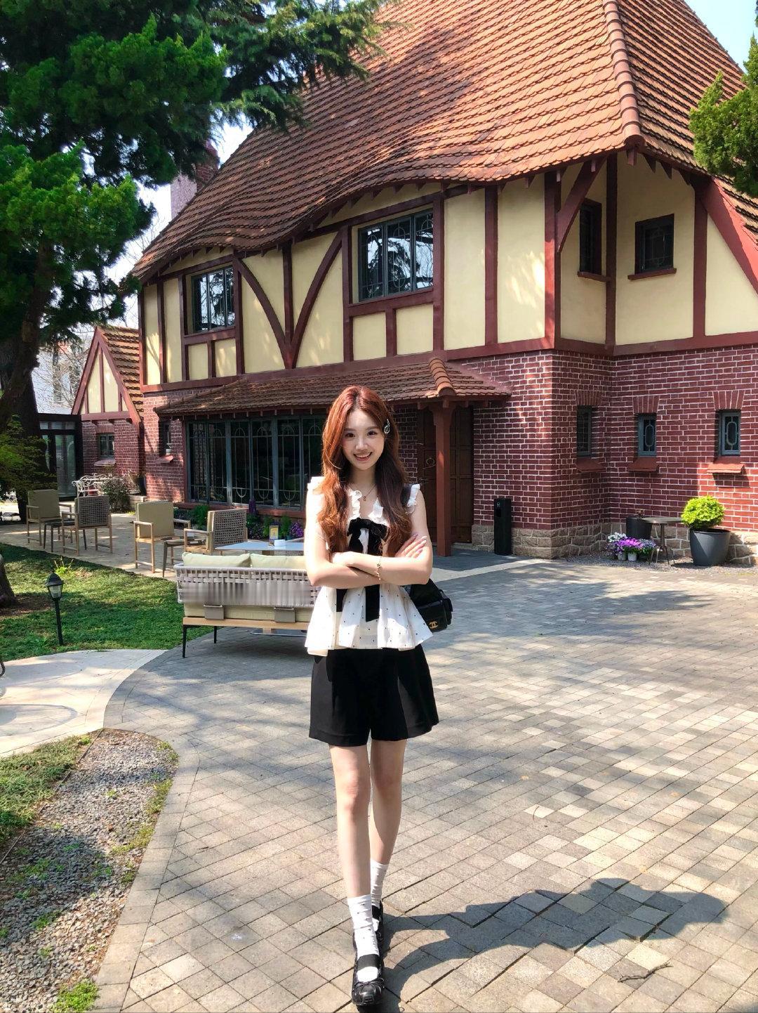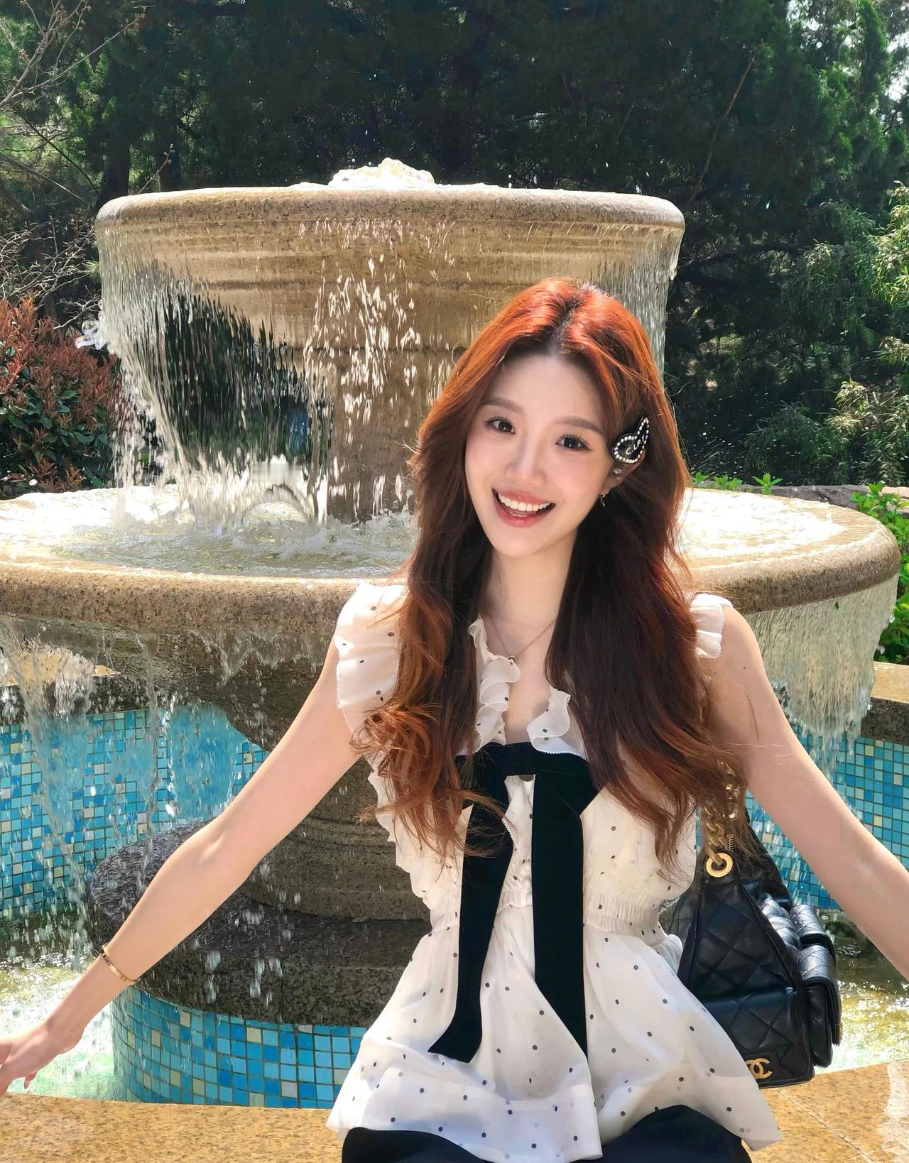阳光、喷泉和红房子,是属于春天的浪漫童话✨ 波点小衫配蝴蝶结,今天是甜度满分的一天~