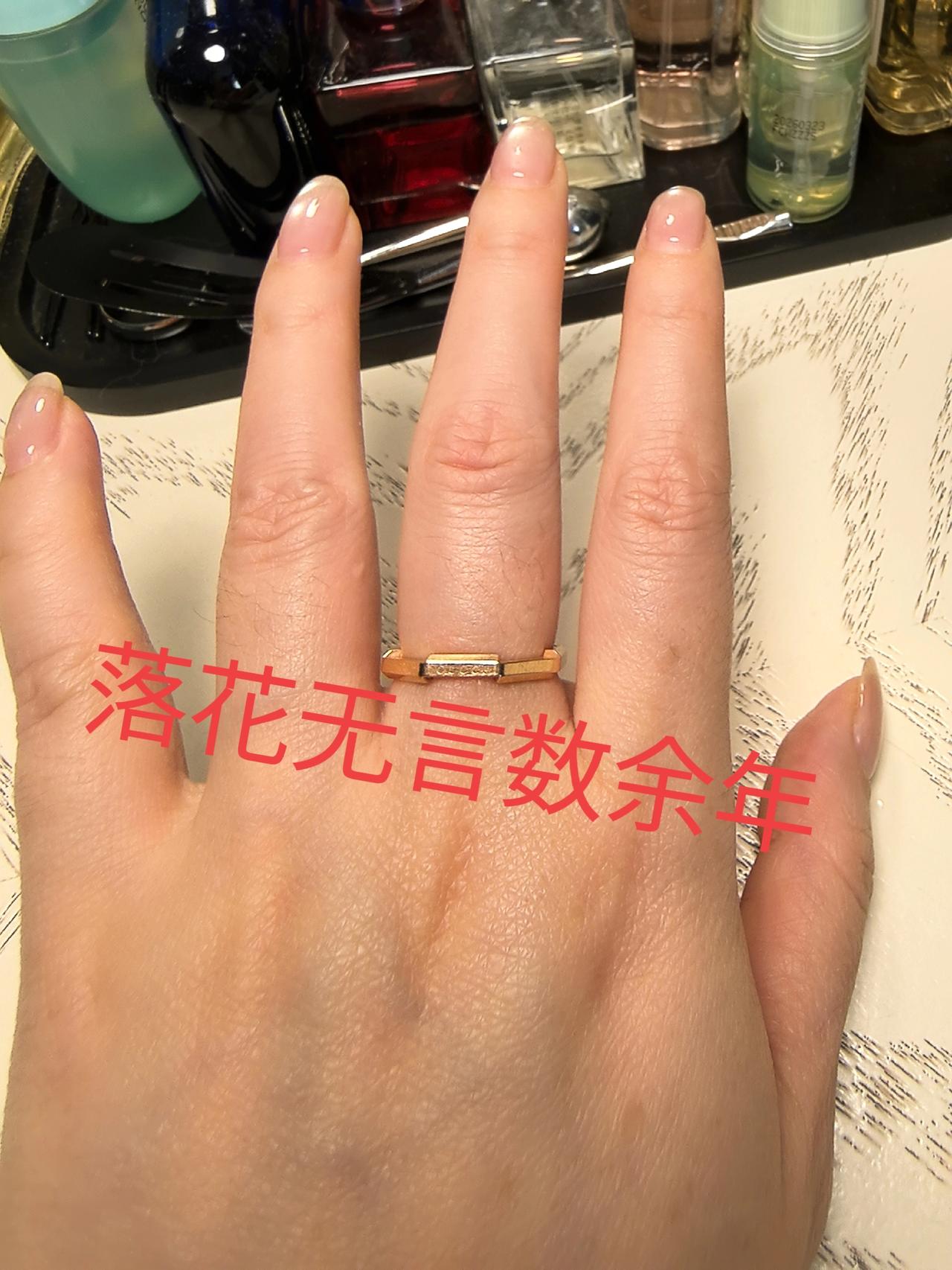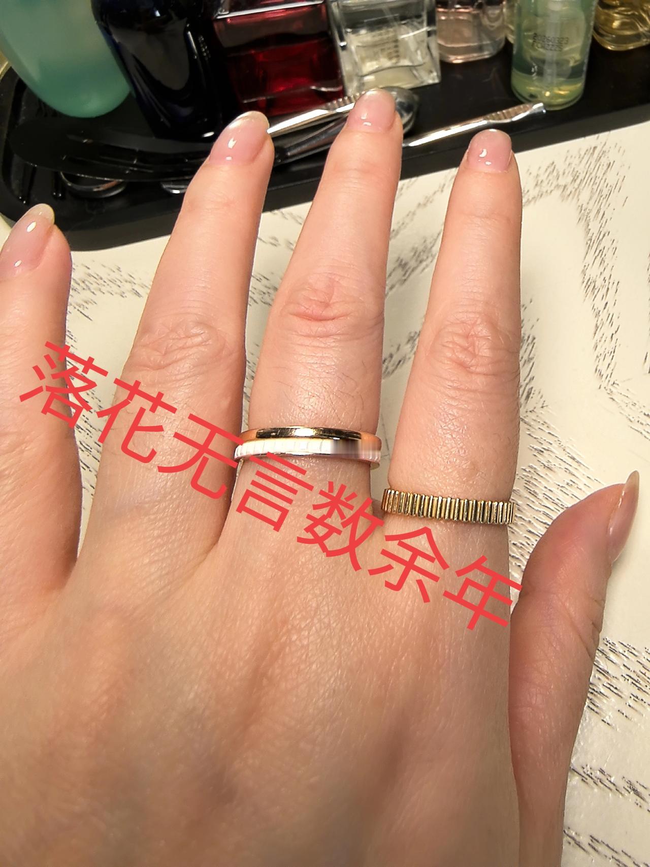 几年间,长胖了不少,以前买的GUCCI戒指戴不进去了P1,勉强挤进去也是好紧呀P2[捂脸][捂脸][捂脸]那会儿12号来着,现在14号指围看着也快溢出出来了[捂脸][捂脸][捂脸]