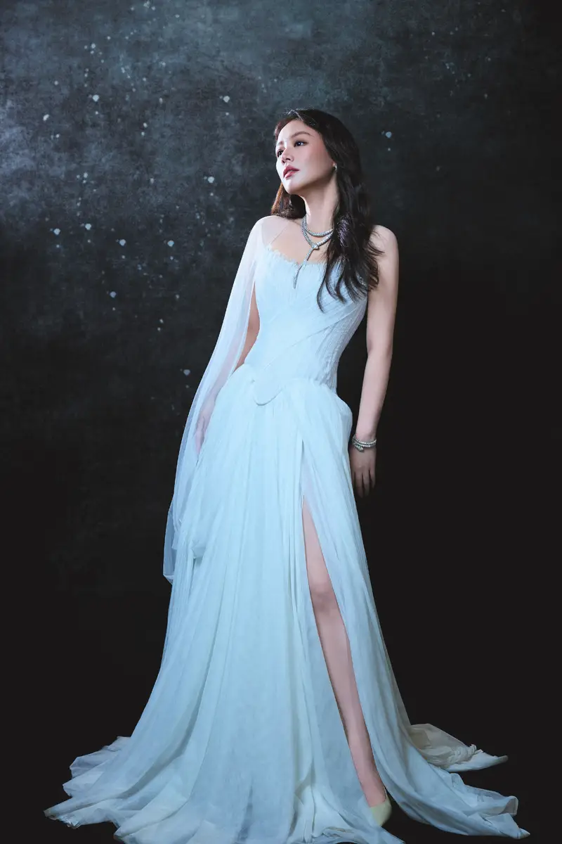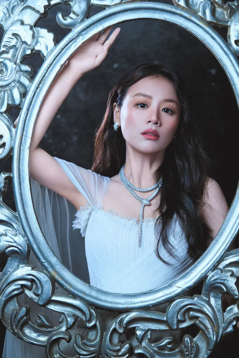 马思纯穿白纱开衩长裙温柔贵气 倚镜而立气质温婉明艳