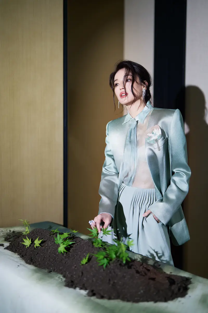 舒淇穿薄荷绿缎面西装套装,清冷松弛气场全开