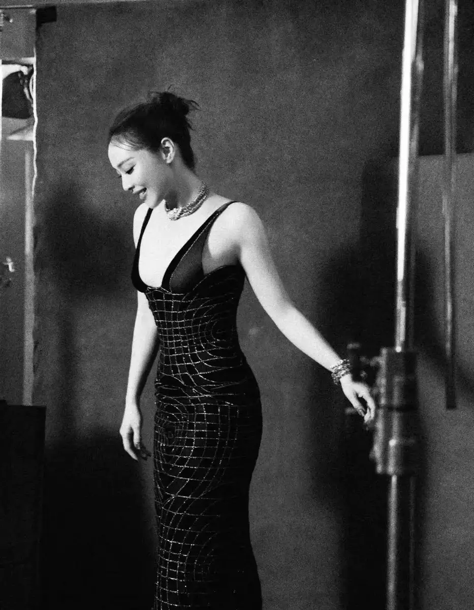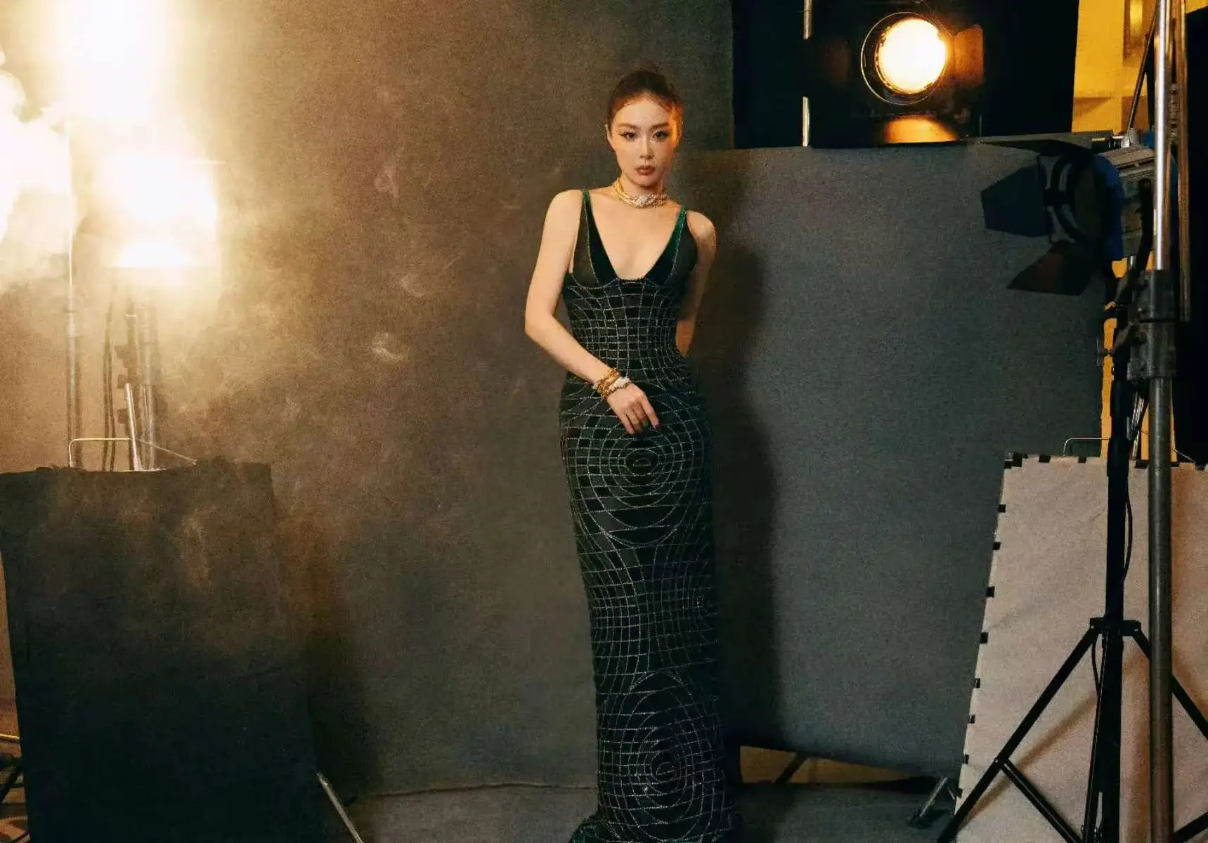 高叶穿墨绿深V裙大气 蛇形金饰加持贵气迷人