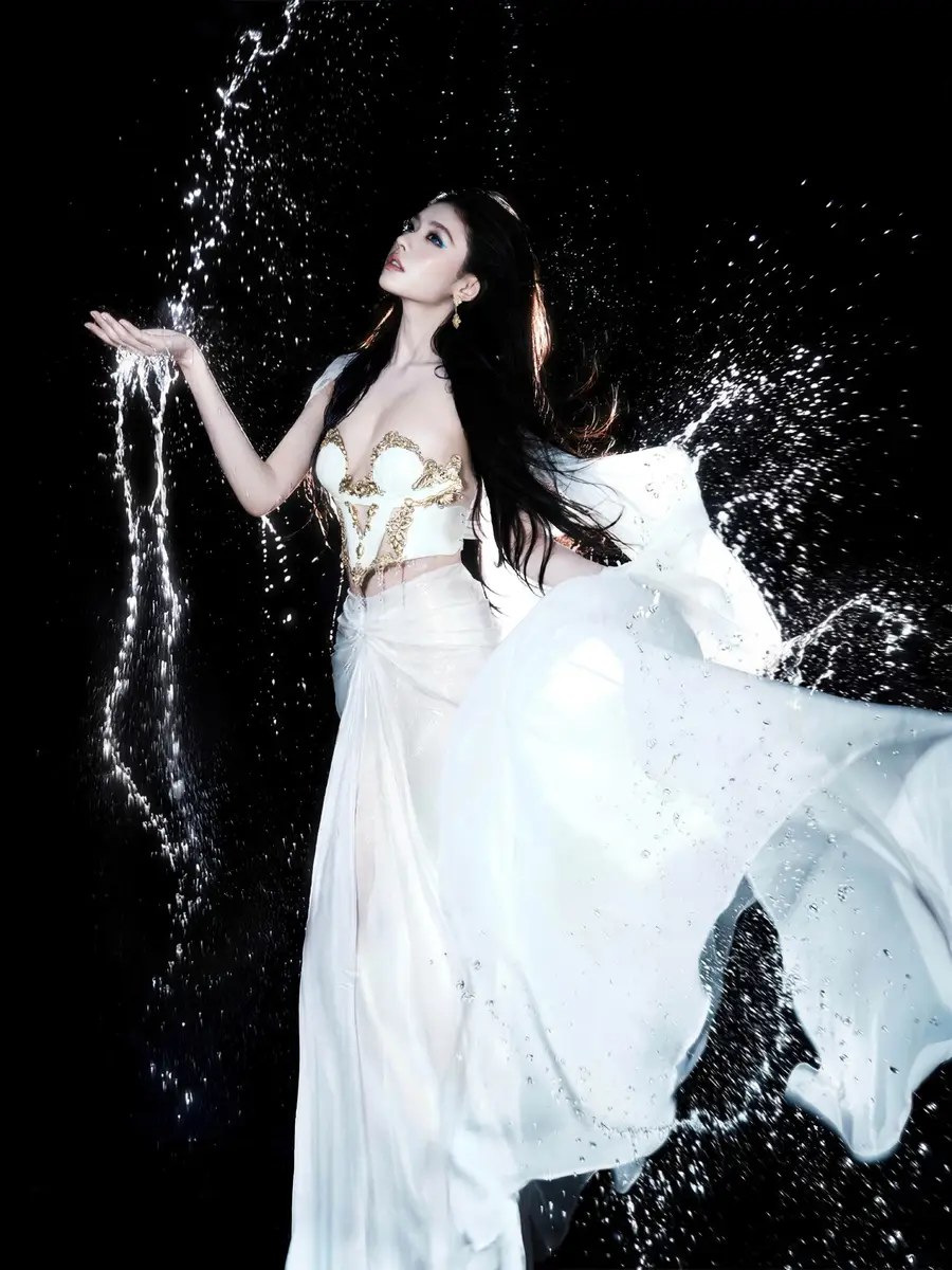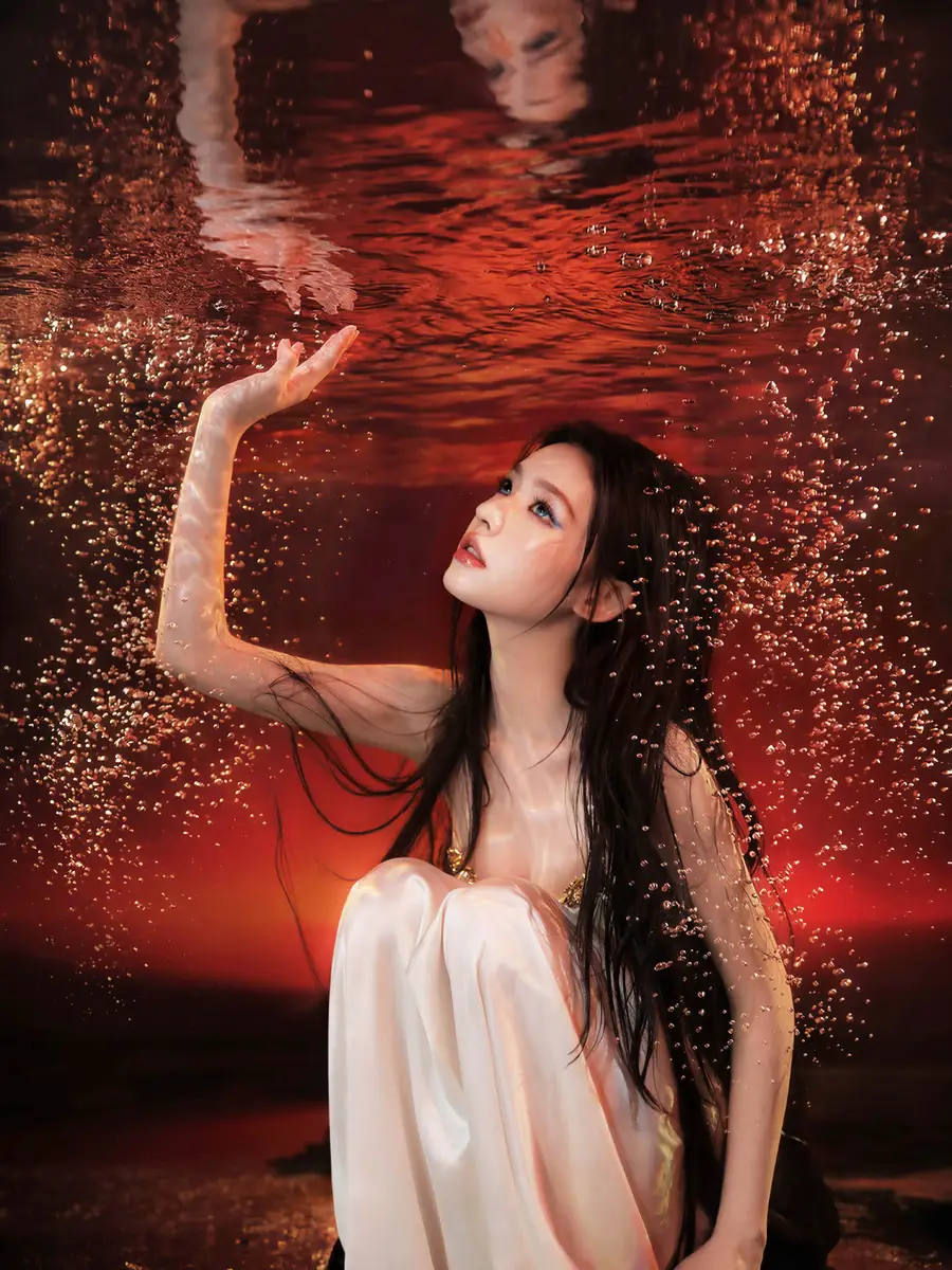 林允一袭白裙变身海底神女 侧颜绝美清冷感拉满