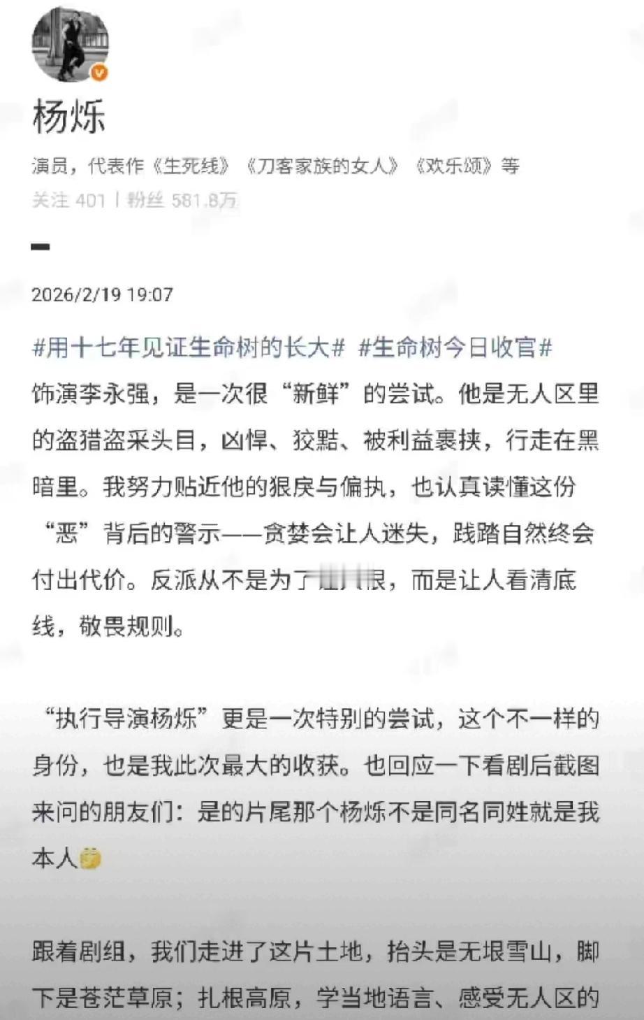 如今的杨烁彻底褪去浮躁,低调转型。专心扎根演技,深耕正剧、年代剧,戏路不断拓宽,拍戏亲赴高原体验生活,零下低温反复拍摄尽显敬业。