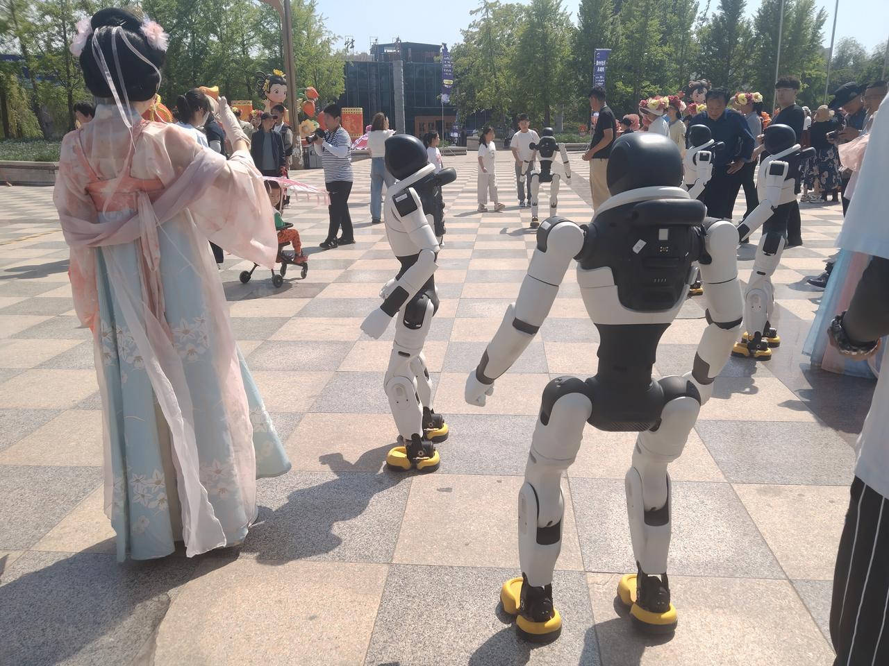 春晚曾在电视上看机器人跳舞,而在牡丹园可以近距离观看,还可以摸它的手。