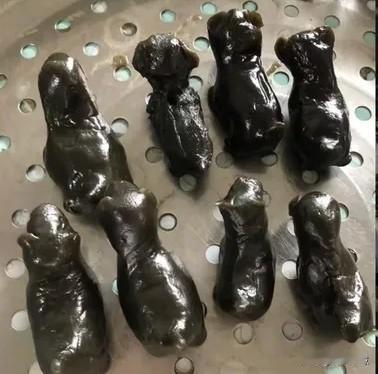 妈妈还把糍粑做成各种款式,有角仔形的、有圆形的,有两头尖长形的,有三角形的“狗虱包”,据说可以把虱子包了,吃了就没虱子咬了,哈哈!现在想起来,小孩还真的好骗!不过,我很喜欢妈妈用鸡屎藤粉做的“狗仔”,还用红豆给它装上眼睛,活灵活现的超可爱,插在门口能“看门”呢。